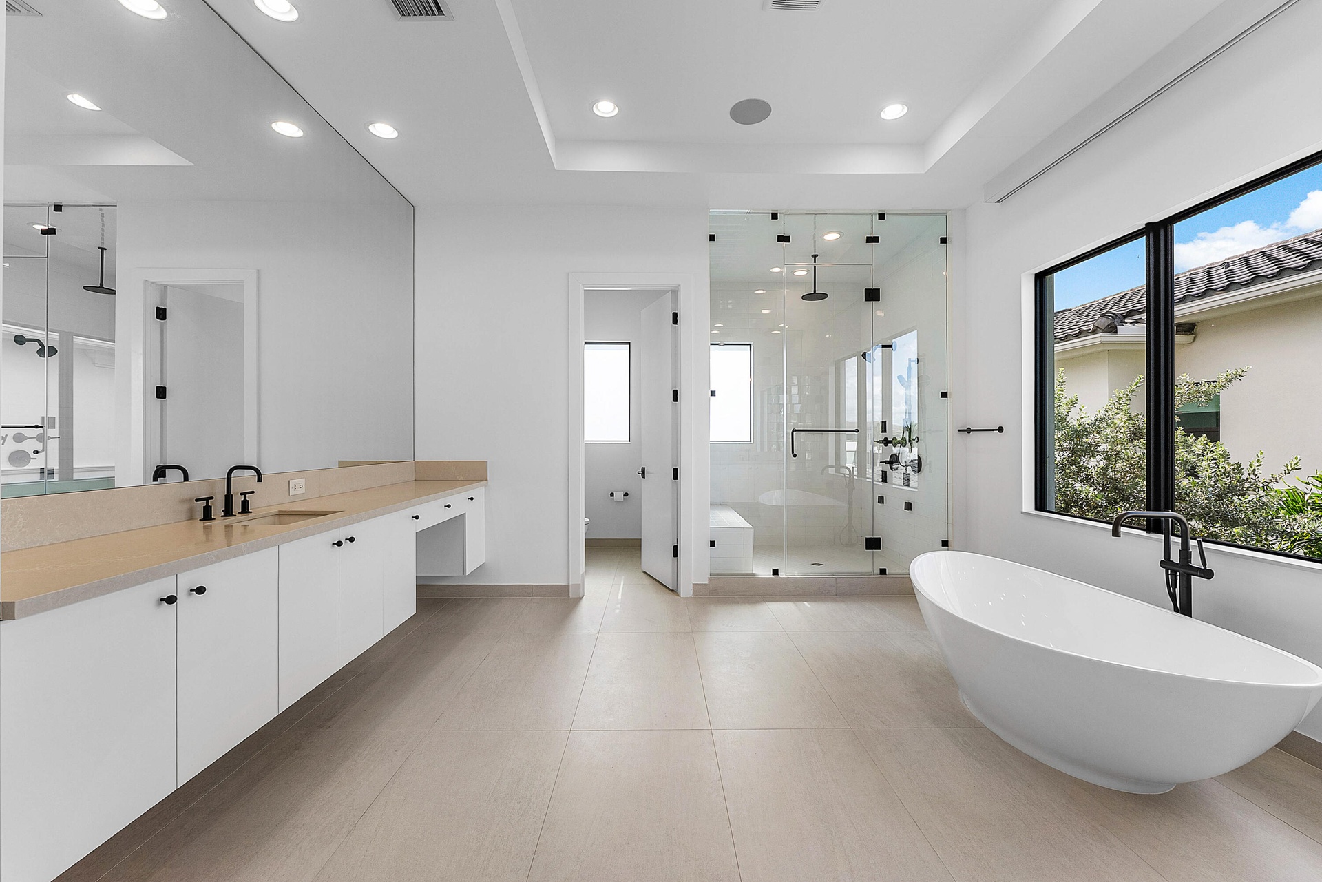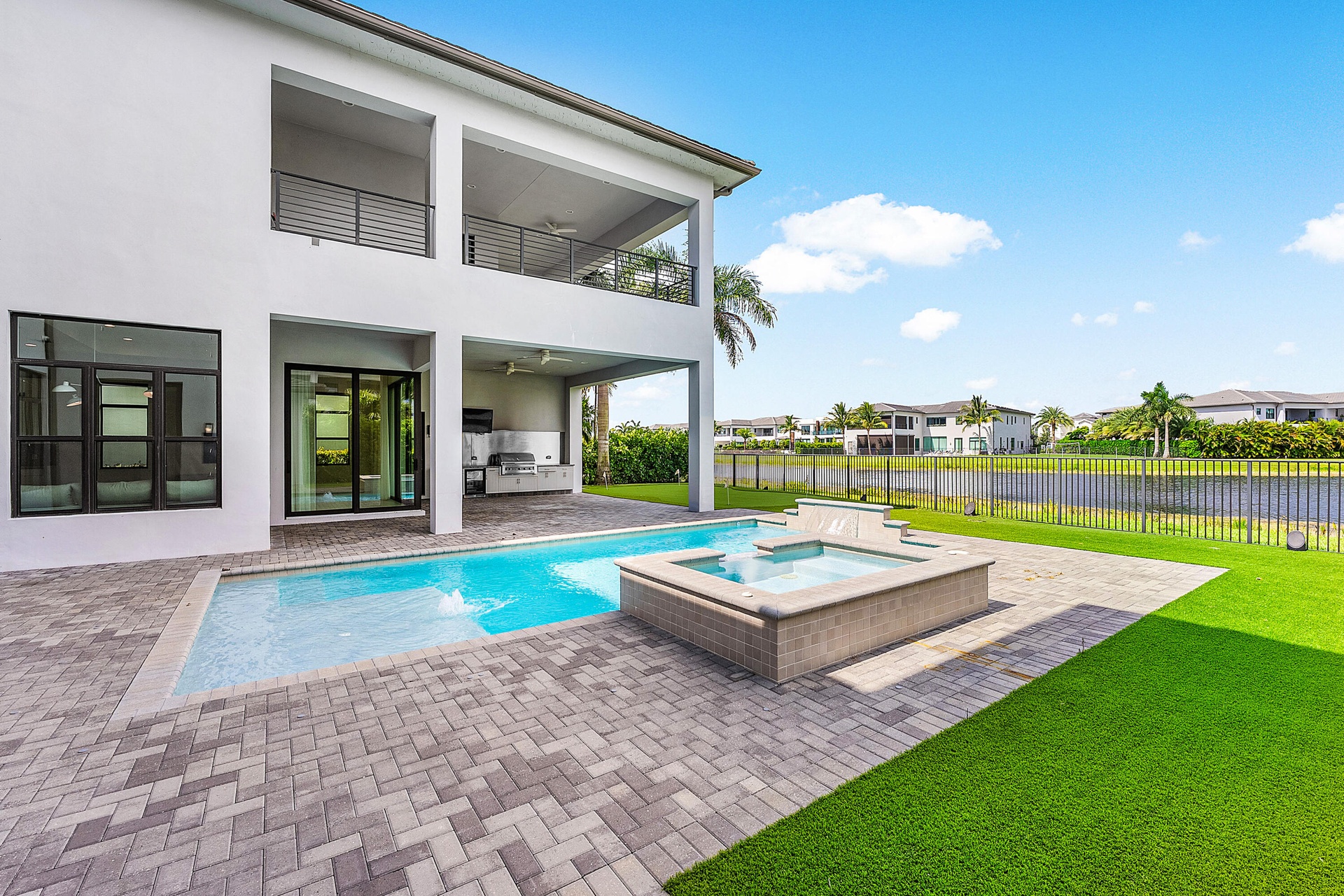A Masterpiece in the Estate Section of Boca Bridges' Most Coveted Lakefront Boca Bridges -- complete with lavish amenities and elite security -- provides the prestigious backdrop for this meticulously customized Vanderbilt Grande Contemporary. Perfectly positioned on a sprawling, premier long-lake lot, this estate captures breathtaking sunset views and delivers inviting resort-style allure to the luxury residential experience. Spanning over 11,000 total square feet with 8,179 square feet of living space, the exquisitely designed layout offers six ensuite bedrooms, a powder room, a cabana bath, a warm and inviting family room, a loft with private balcony, and a 4-car garage. Inside, striking design elements include a glass-railed staircase, designer millwork, and a sleek gas fireplace