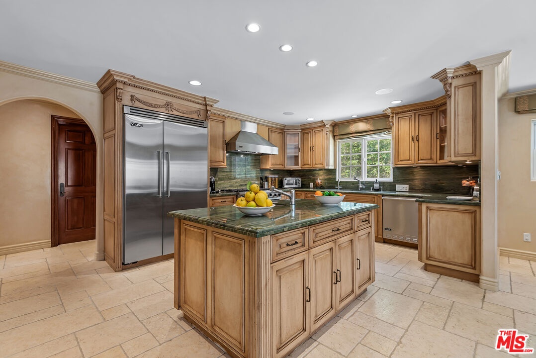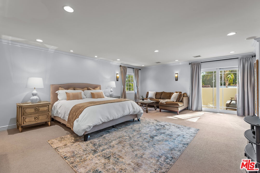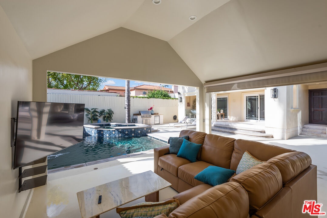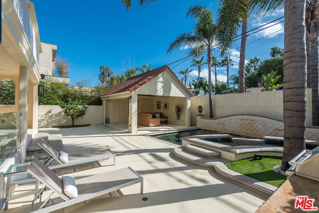 DescriptionLovely Mediterranean available furnished located in the Hancock Park Elementary School district. This well appointed 4 bed + 5 bath home offers living room with fireplace, formal dining and chef's gourmet kitchen equipped with top-of-the-line appliances and oversized center island with prep sink. Inviting primary retreat featuring sitting area, custom walk-in closet, private balcony and luxurious bath with separate shower and tub with jets. 3 additional en suite bedrooms upstairs. Spacious family room seamlessly joins both formal dining and breakfast room which leads to covered patio - perfect for entertaining! Great outdoor space highlighted by sparkling pool with fountains, Jacuzzi spa, large cabana with TV and outdoor kitchen with BBQ and fridge. AV features include surround sound systems in primary and family rooms, ceiling speakers throughout, and 6 plasma TVs. Long private driveway and attached carport accommodating multiple cars. Internet, pool and gardener included with rent.Amenities- Breakfast Room