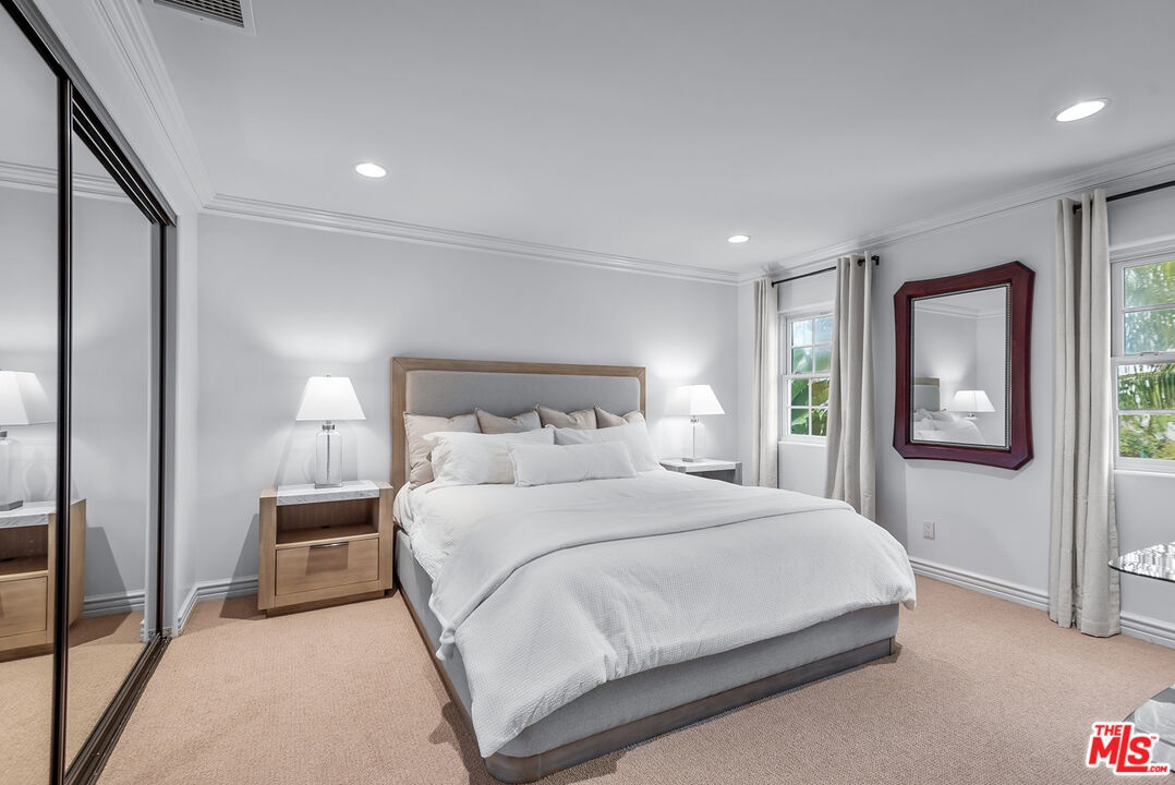 Lovely Mediterranean available furnished located in the Hancock Park Elementary School district. This well appointed 4 bed + 5 bath home offers living room with fireplace, formal dining and chef's gourmet kitchen equipped with top-of-the-line appliances and oversized center island with prep sink. Inviting primary retreat featuring sitting area, custom walk-in closet, private balcony and luxurious bath with separate shower and tub with jets. 3 additional en suite bedrooms upstairs. Spacious family room seamlessly joins both formal dining and breakfast room which leads to covered patio - perfect for entertaining! Great outdoor space highlighted by sparkling pool with fountains, Jacuzzi spa, large cabana with TV and outdoor kitchen with BBQ and fridge. AV features include surround sound systems in primary and family rooms, ceiling speakers throughout, and 6 plasma TVs. Long private driveway and attached carport accommodating multiple cars. Internet, pool and gardener included with rent.