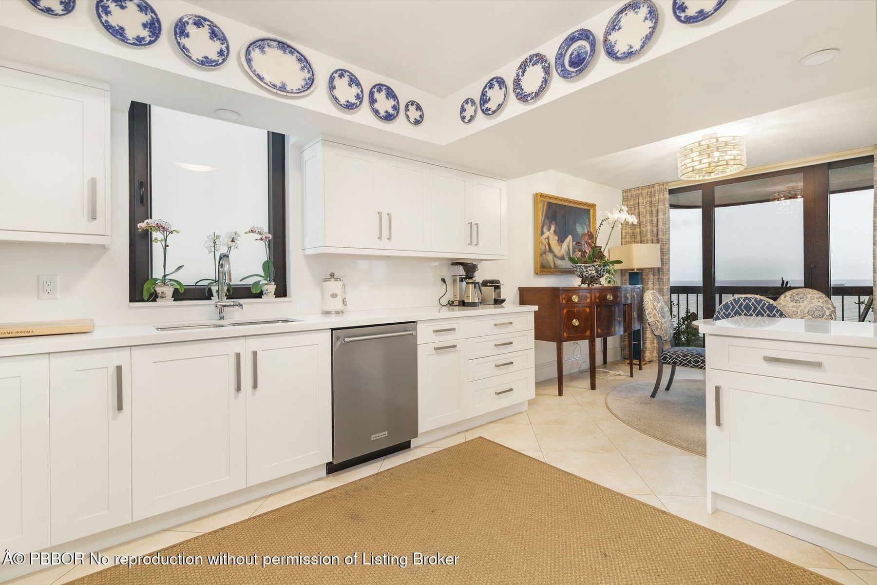 The stunning open kitchen offers an endless ocean view and high end appliances. High base