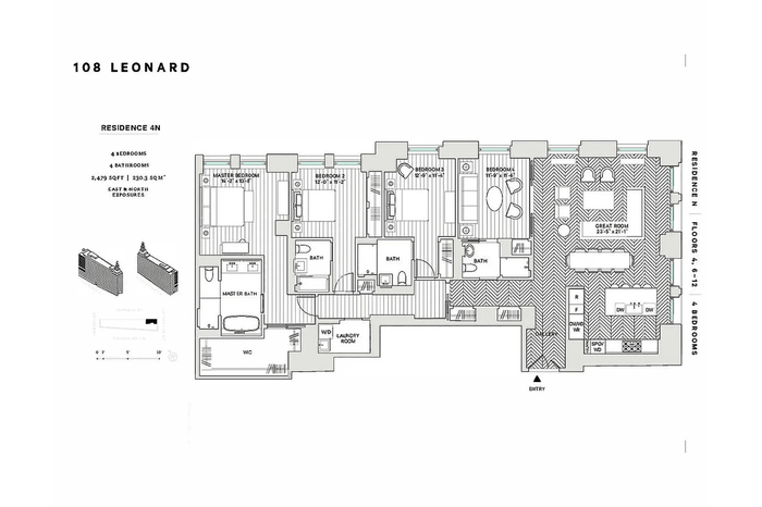 108 Leonard Street, Residence 4N 4 Beds 4 Baths 2,487 SF