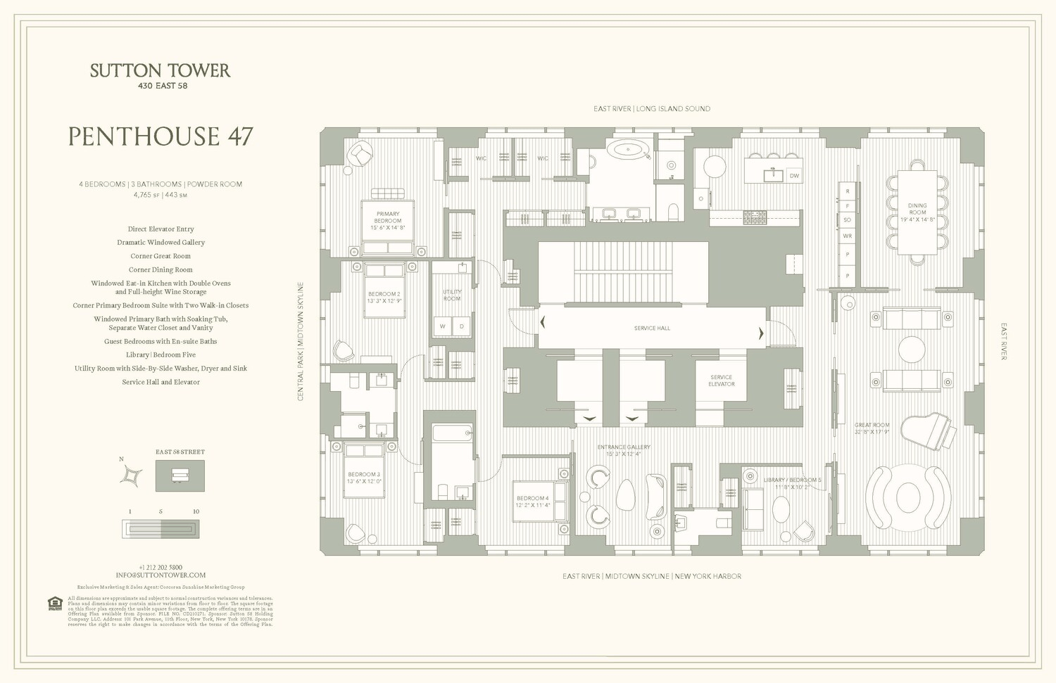 Exclusive Marketing and Sales Agent: Corcoran Sunshine Marketing Group. The complete terms are in an Offering Plan available from the Sponsor, Sutton 58 Holding Company LLC, 101 Park Avenue, 11th Floor, New York, NY 10178 under File No. CD-210271. Property Address: 430 East 58th Street, New York, New York 10022. Equal Housing Opportunity. Corcoran Sunshine Marketing Group fully supports the principles of the Fair Housing Act and the Equal Opportunity Act.