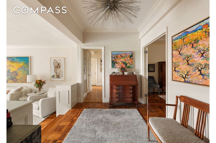Residence 14R enjoys bright northern and southern exposures, with VIEWS OF CENTRAL PARK, and it is elegantly appointed with high ceilings, generous dimensions, custom crown molding for added refinement, beautiful hardwood floors, and pre-war details throughout.
