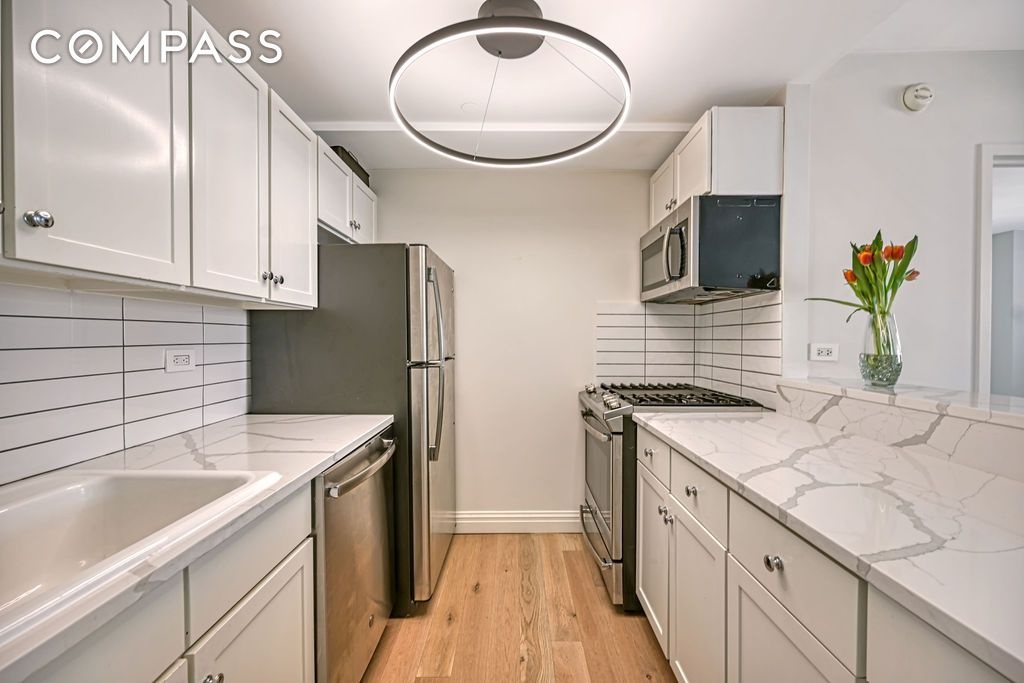 This could be the easiest decision you'll make this year! It's a turn-key Chelsea home with the low closing costs of a coop and the rules of a condo. 8C has been beautifully renovated with new white oak floors, modern lighting throughout, updated kitchen and bathroom with all new appliances, countertop, vanities & tiling. Enjoy breakfast at the bar of your open kitchen, and the privacy of the split bedroom floor plan. Full-size washer and vented dryer add to the comforts of home. You will appreciate the great city views of the Highline and convenience of shopping and transportation along 23rd St. For the athlete in you, Chelsea Piers is a stone's throw to the west and the entirety of Hudson River Park is yours to enjoy! 520 W 23 is a full service doorman building with beautiful roof deck. Unlimited subletting is allowed, making this an excellent investment for years to come.