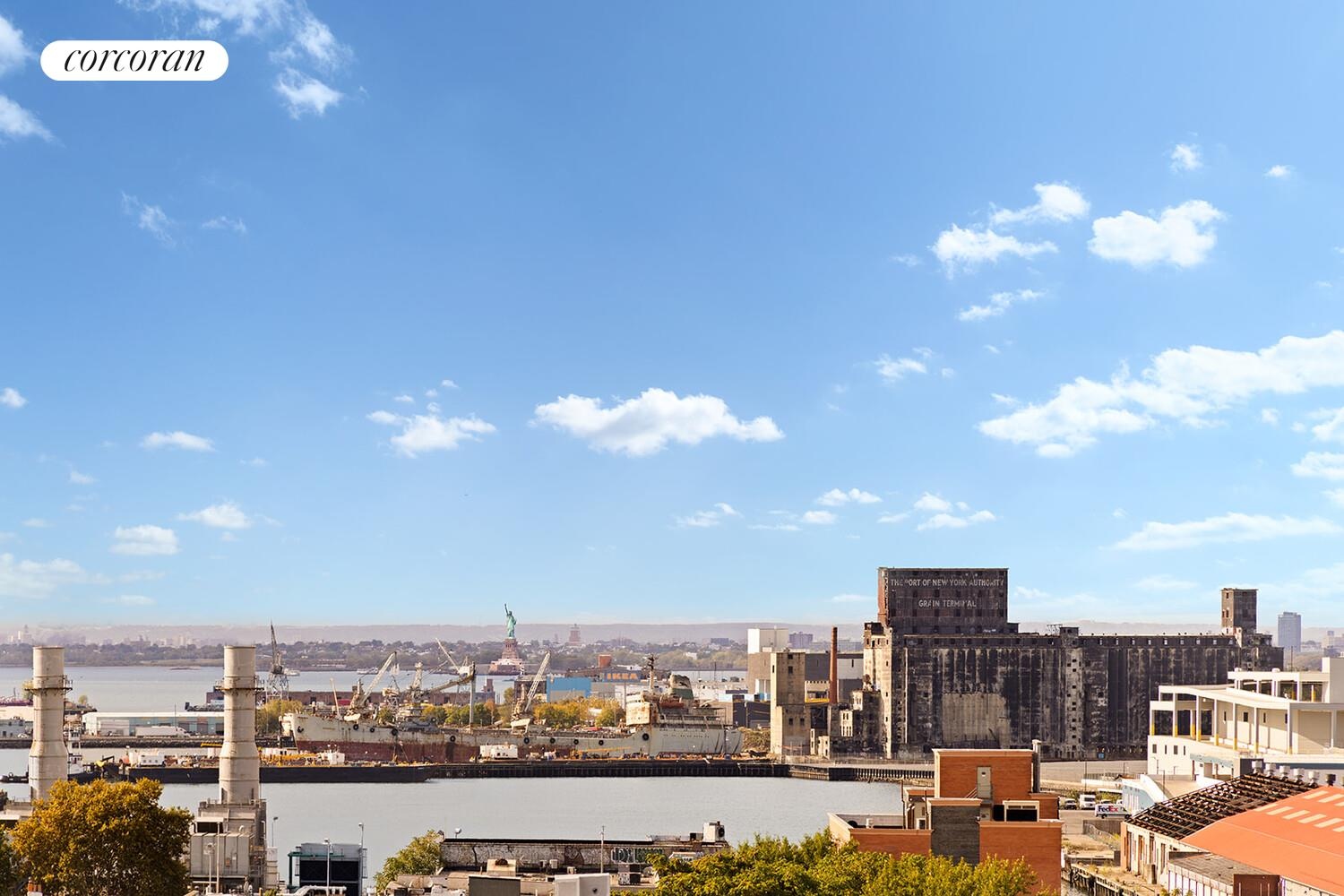 An open sleeping loft on the upper level functions as an inviting second floor, featuring more than 7-foot ceilings and a large private laundry room. Additionally, on your way up to the expansive roof deck, on the third level, you'll find a bonus room perfect for use as an office or as a guest room. This room also leads out to a large second private terrace that boasts sweeping views of Manhattan, the water, and the Statue of Liberty.