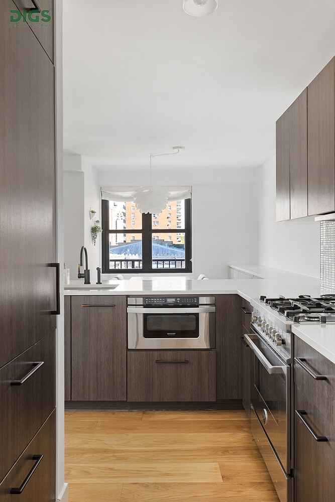 Flooded with natural light from oversized windows, this home features an open and airy layout perfect for everyday living and entertaining. The living and dining areas flow seamlessly into an open, renovated chef's kitchen outfitted with a Bertazzoni 6-burner stove, paneled Miele dishwasher and hood, and paneled Liebherr refrigerator. Other features of this beautiful home include 7.25" wide plank white oak floors, marble floors in the bathrooms, a deep soaking tub, and an in-unit W/D.