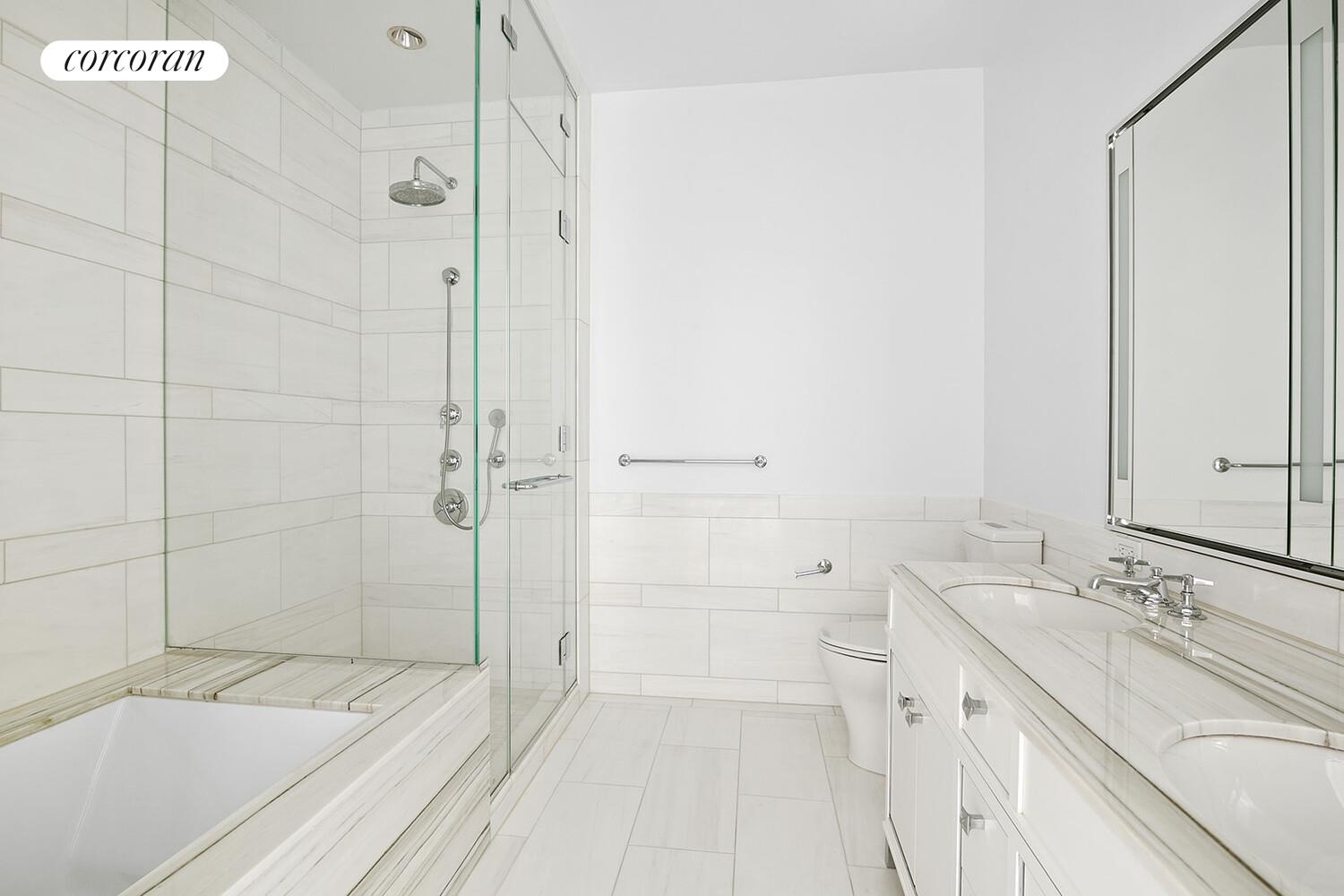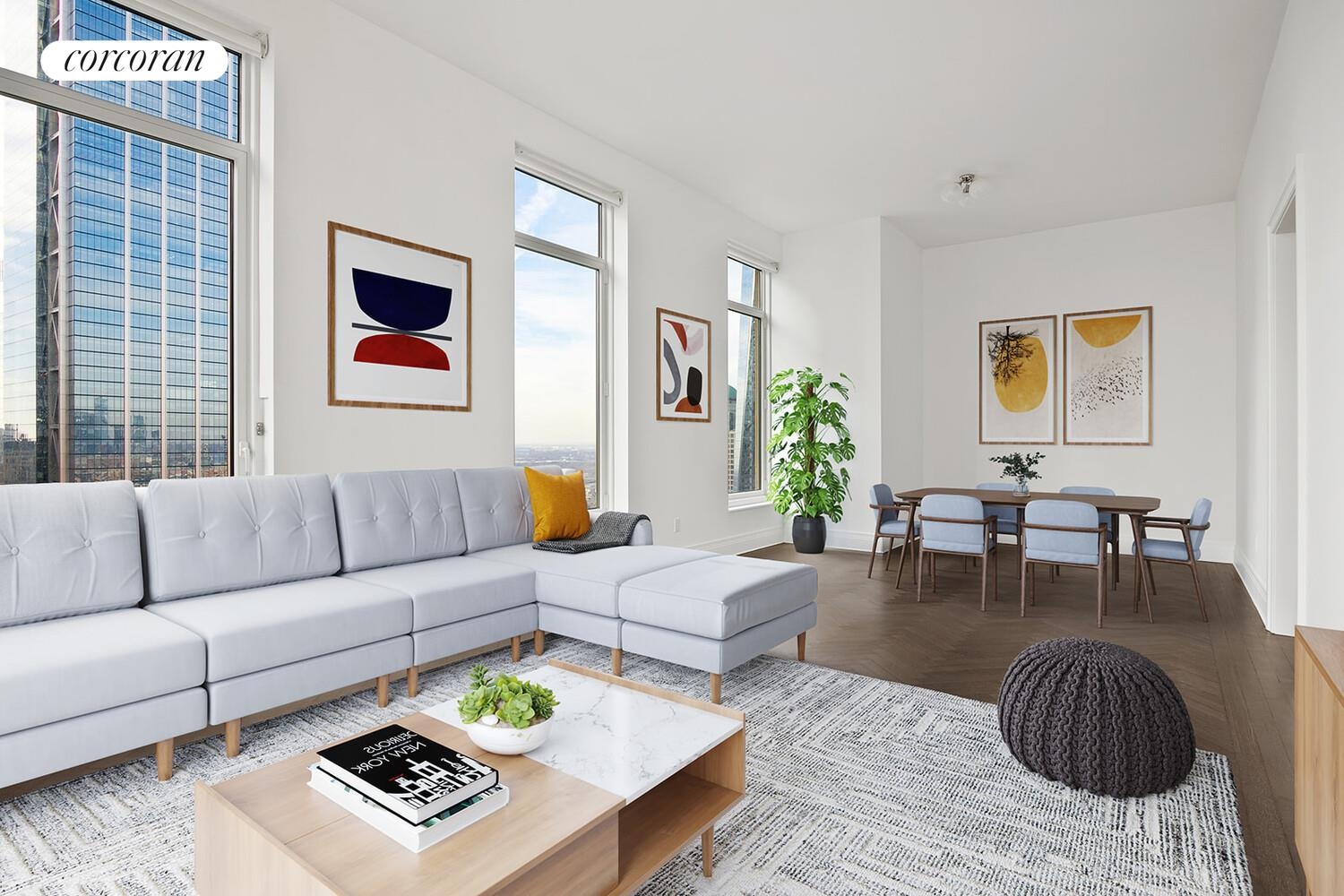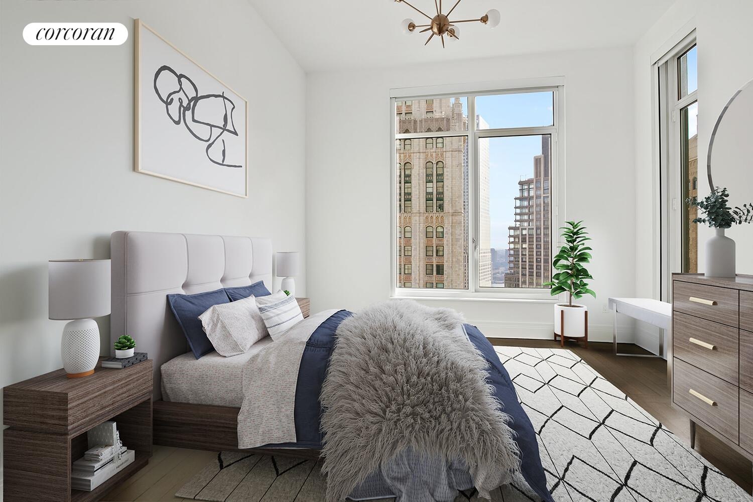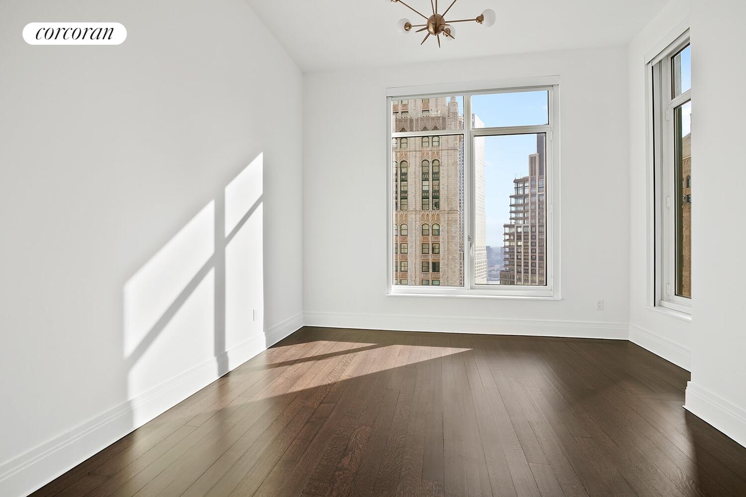Masterfully designed by world renowned architect Robert A. M. Stern, 30 Park Place, Four Seasons Private Residences offers a boutique collection of only 157 luxury condominiums, and an unparalleled, full- service luxury life style. As one of the tallest residential towers in all of downtown Manhattan, 30 Park Place offers some of the finest views in all of New York City. Designed for the most discerning buyer who demands perfection, this home offers floor-to-ceiling windows, almost 11 foot ceilings, spacious bedrooms, and en-suite bespoke baths. The apartment has been beautifully upgraded and customized with stained floors pencil trim decorative molding crown molding and raised ceiling heights and powder room and hallways to second bedroom. The corner master bedroom suite has is very private and has two walk in closets. The superbly well-proportioned second bedroom has wonderful eastern exposure. . This coveted property offers superb finishes, including inlaid pristine blonde solid oak wood flooring with herringbone pattern in all formal rooms. The private kitchen is located just off the living and dining room area and its custom details include Bilotta rift-cut oak kitchen cabinetry and Gaggenau appliances. The building is extremely thoughtful in its approach to services, and as such the 38th floor is devoted entirely to private residential amenities including a fitness and yoga center, a private dining room, a conservatory and lounge with access to loggias, a Roto-designed playroom, and a screening room. Developed by visionary Silverstein Properties, the residences of 30 Park Place may enjoy access to the Four Seasons Hotel amenities located on the lower levels. These include spa and salon facilities, a 75" swimming pool, an attended parking garage, a restaurant, bar, lounge, ballroom, meeting rooms, and a comprehensive suite of a la carte services. 30-Park Place also is located next to all major transportation, and some of the best fine dining experiences in Tribeca.
