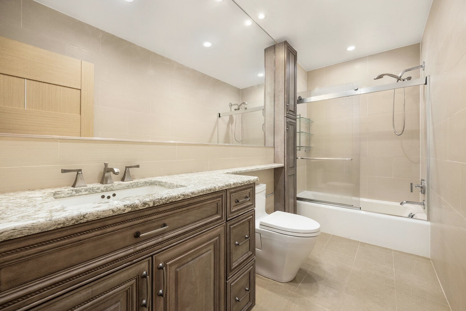 Accessed by a private elevator, the home opens into expansive living and entertaining spaces finished with contemporary design, custom millwork, and floor-to-ceiling windows that flood the interiors with natural light. The residence features five spacious bedrooms, three full bathrooms and two half bathrooms, perfectly designed for modern living.