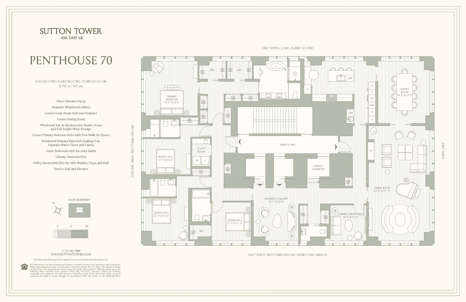 Exclusive Marketing and Sales Agent: Corcoran Sunshine Marketing Group. The complete terms are in an Offering Plan available from the Sponsor, Sutton 58 Holding Company LLC, 101 Park Avenue, 11th Floor, New York, NY 10178 under File No. CD-210271. Property Address: 430 East 58th Street, New York, New York 10022. Equal Housing Opportunity. Corcoran Sunshine Marketing Group fully supports the principles of the Fair Housing Act and the Equal Opportunity Act.