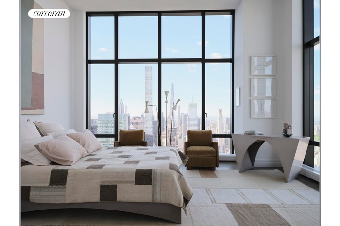 Penthouse 70 is a four-bedroom, four-and-a-half-bathroom residence featuring 4,765 square feet of interior space accented by southern, eastern, northern, and western exposure. Direct elevator entry leads into this expansive home, which offers unmatched views of The Empire State Building, Chrysler Building, Central Park, George Washington Bridge, and beyond. The dramatic entry gallery leads to a gracious great room that boasts southeastern exposure and floor-to-ceiling windows. A north-facing kitchen with adjacent dining room offers a Statuarietto marble island and Italian custom-crafted matte lacquer white cabinetry adorned with Sub-Zero and Wolf appliances. A formal dining room is adjacent to the kitchen and offers northeastern exposure.