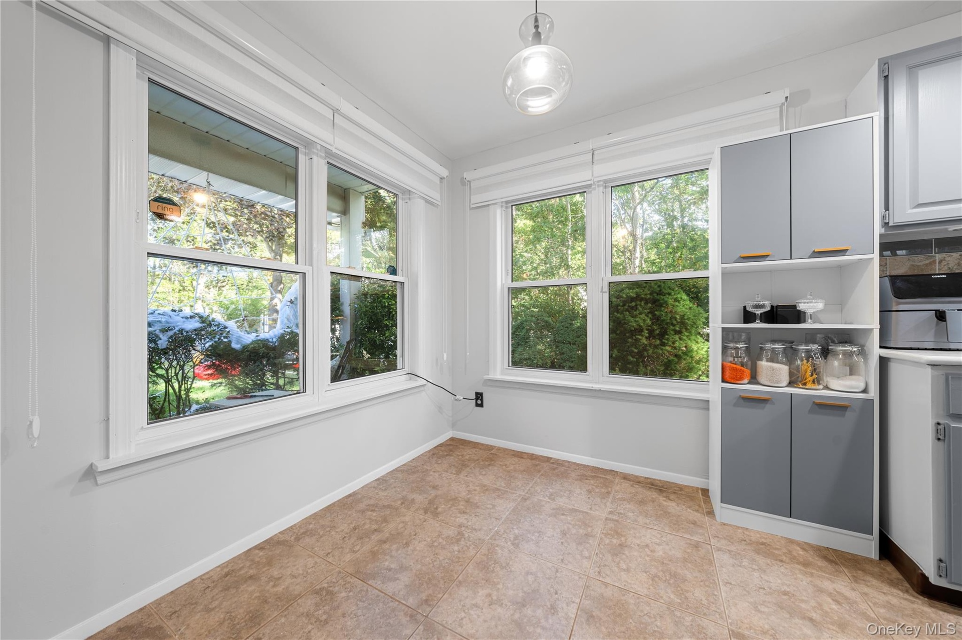 - Unfurnished sunroom featuring tile patterned floors and baseboards