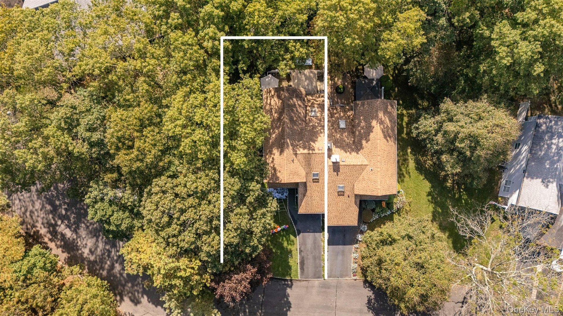 - View of subject property with property boundaries highlighted and a heavily wooded area