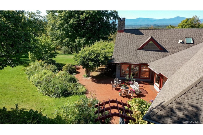 Nearly 30 secluded acres of rolling meadows and woodlands unfold into breathtaking panoramic views of the Catskill Mountains. This is a place to slow down and reconnect. Reminiscent of the Adirondack Great Lodges, this home is a masterful blend of rustic elegance and timeless craftsmanship. Soaring, strap-and-beam ceilings create a dramatic sense of space, while a custom-crafted staircase and a floor-to-ceiling wood-burning stone fireplace add to the home's warmth and grandeur. Step from the main living area out onto the brick patio to take in sweeping sunset views over the mountains. The expansive dining room easily accommodates large gatherings, and features a cozy window seat ideal for lounging while soaking in the views. The chef’s kitchen is both stylish and functional, featuring a beamed tin ceiling, tile flooring, and stone countertops that lend a timeless elegance. Just off the kitchen, step into your private outdoor oasis. This expansive patio features a pergola draped in mature, blooming wisteria. At the heart of the space is a fully equipped built-in barbecue station perfect for hosting al fresco dinners or weekend cookouts. A half bath, laundry room, and walk-in pantry offer added convenience, leading directly to the attached garage. The first-floor primary ensuite has westerly mountain vistas, direct access to its own private deck, and a secluded outdoor shower. Three additional bedrooms and a full bath provide ample space for family and guests. The second floor offers additional privacy and flexibility, featuring a second primary ensuite complete with a private balcony. Two more bedrooms with balconies, a full bath, and a cozy reading nook create a warm and welcoming retreat. The heated gunite pool and pool house, complete with a full bath and kitchen, are perfectly positioned to capture all-day sunlight while maintaining complete privacy. Tucked away for privacy, the Vermont Post and Beam barn adds both character and versatility to the property. Outfitted with electric and a full second-story loft, it features eaved windows that flood the space with natural light. This exceptional property exudes quiet rustic elegance, with spacious living areas, rolling lawns, and dramatic Catskill Mountain views. Located in the northeast area of Dutchess County with easy access to Red Hook, Rhinebeck, Pine Plains, Millbrook, Tivoli, Germantown, Hudson and more. Convenient to trains, Fisher Center, Bard College, private airports, excellent restaurants, farmers markets and more.