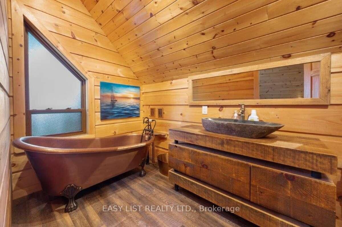 For more info on this property, please click the Brochure button. Welcome to Your Furnished Dream Log Home in Prestigious Thunder Beach! Nestled on a stunning half-acre lot with mature trees, this breathtaking log home offers rustic charm with modern upgrades. Located in the prestigious Thunder Beach community, it's just a three-minute walk to a sandy beach, park, and a delightful restaurant - ideal for those who love nature and convenience. Inside, the great room features a cozy gas fireplace, creating the perfect ambiance for relaxing evenings. The brand-new kitchen (2023) is a chef's dream, boasting sleek stainless steel appliances and elegant finishes. Overlooking the great room, a spacious game room with a pool table offers a fantastic entertainment space with views of the beautiful front yard. The master bedroom is a true retreat, featuring stunning water views, a private deck, a walk-in closet, and a luxurious ensuite. Two main-floor bedrooms each have private deck access, while the theatre room doubles as an extra sleeping area with four beds. Furniture is included. A two-car garage includes a guest suite with a two-piece bath, providing privacy for visitors or an ideal home office. The charming shed adds even more versatility, with a loft featuring two double beds. Complete with a Generac generator for peace of mind, this extraordinary log home is the perfect escape. Don't miss this rare opportunity to own a slice of paradise in Thunder Beach!