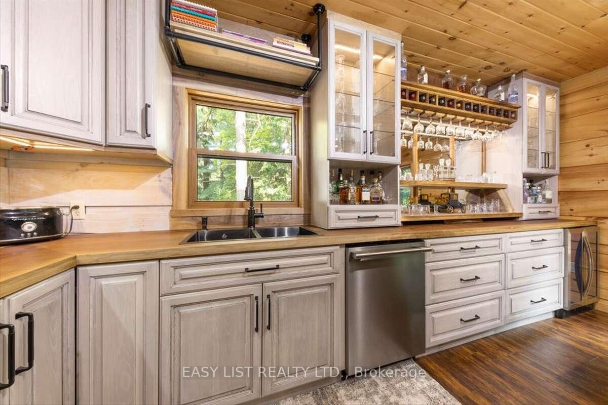 DescriptionFor more info on this property, please click the Brochure button. Welcome to Your Furnished Dream Log Home in Prestigious Thunder Beach! Nestled on a stunning half-acre lot with mature trees, this breathtaking log home offers rustic charm with modern upgrades. Located in the prestigious Thunder Beach community, it's just a three-minute walk to a sandy beach, park, and a delightful restaurant - ideal for those who love nature and convenience. Inside, the great room features a cozy gas fireplace, creating the perfect ambiance for relaxing evenings. The brand-new kitchen (2023) is a chef's dream, boasting sleek stainless steel appliances and elegant finishes. Overlooking the great room, a spacious game room with a pool table offers a fantastic entertainment space with views of the beautiful front yard. The master bedroom is a true retreat, featuring stunning water views, a private deck, a walk-in closet, and a luxurious ensuite. Two main-floor bedrooms each have private deck access, while the theatre room doubles as an extra sleeping area with four beds. Furniture is included. A two-car garage includes a guest suite with a two-piece bath, providing privacy for visitors or an ideal home office. The charming shed adds even more versatility, with a loft featuring two double beds. Complete with a Generac generator for peace of mind, this extraordinary log home is the perfect escape. Don't miss this rare opportunity to own a slice of paradise in Thunder Beach!Amenities- Auto Garage Door Remote