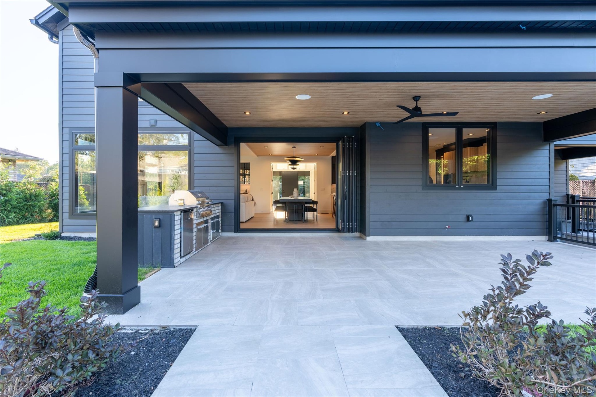 - View of patio / terrace with ceiling fan and an outdoor kitchen