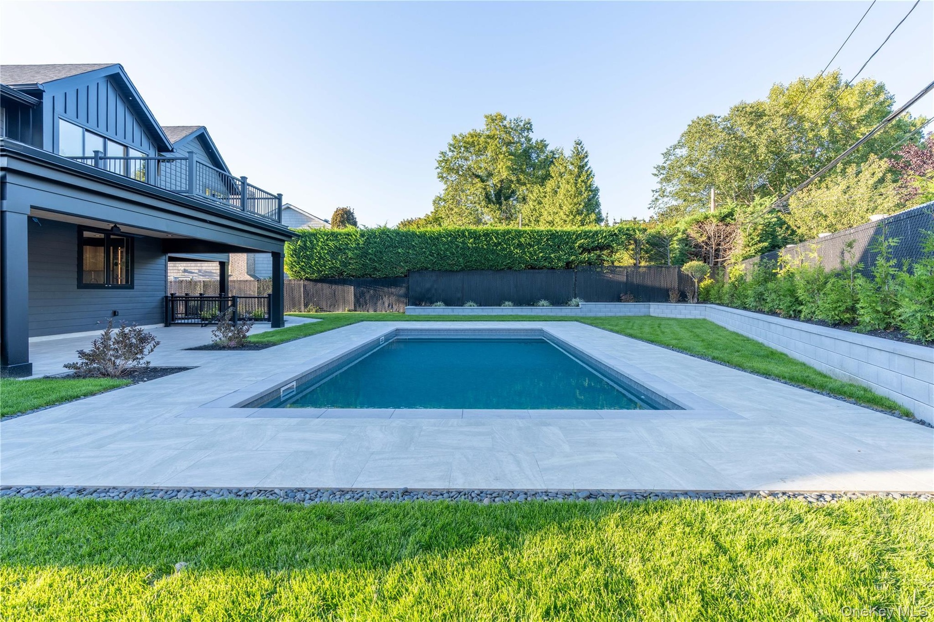 Introducing a one of a kind new construction modern luxury masterpiece with cutting edge architectural and interior design by Gianni Developers and built by reputable builder. Situated on a quarter acre property this 6,100 sq. ft. showpiece has been crafted with the highest level of quality, detail, and innovation a true statement of modern luxury living. Step through a grand two story foyer featuring a floating staircase tower with custom glass railings and floor to ceiling windows that flood the home with natural light. The heart of the home is an expansive open concept living space a chef’s custom dream kitchen equipped with a full Thermador appliance suite, including an oversized refrigerator and freezer, built in espresso machine, double wall ovens, wine tower, oversized range and a six seat center island. A walk in pantry and spacious dining area open seamlessly to a bright and airy family room with built in wetbar equipped with ice maker and drink drawer perfect for entertaining. Completing the main floor is a full first-floor ensuite bedroom and a fully finished two car garage. Additionally, the home features a large laundry closet on the first floor fully equipped with custom cabinetry and appliances for added convenience. California style folding glass doors extend the living space outdoors to an oversized resort style backyard. Enjoy a covered outdoor living area with a fully equipped kitchen, heated inground saltwater pool, and lush landscaping designed for privacy and leisure. The walk out basement opens directly to this serene oasis, offering easy flow between indoor and outdoor spaces. The primary suite is a private sanctuary featuring a custom four panel slider leading to a private balcony overlooking the pool. Indulge in a spa inspired designer bathroom, dual walk in closets, and exquisite custom millwork. An oversized full laundry room on the second floor, fully equipped with sink and modern appliances, provides ultimate practicality and luxury. Three additional spacious bedrooms with vaulted ceilings and designer bathrooms complete the upper level, each thoughtfully designed with modern elegance. The fully finished basement offers generous living space with large windows, double door access to the backyard, a full bathroom, and an additional bedroom perfect for guests, a gym, or home office. Nestled mid block in the highly sought after Salisbury Estates section of Westbury, this residence combines tranquility with convenience. Enjoy proximity to Michelin star restaurants, boutique shopping, and just a short ride to NYC. With low neighborhood taxes and top rated schools, this home delivers unmatched value in one of Long Island’s most desirable communities. Live in pure luxury where every detail is a statement of craftsmanship, comfort, and class. Nothing left to do besides drop your bags move right in and experience the extraordinary.