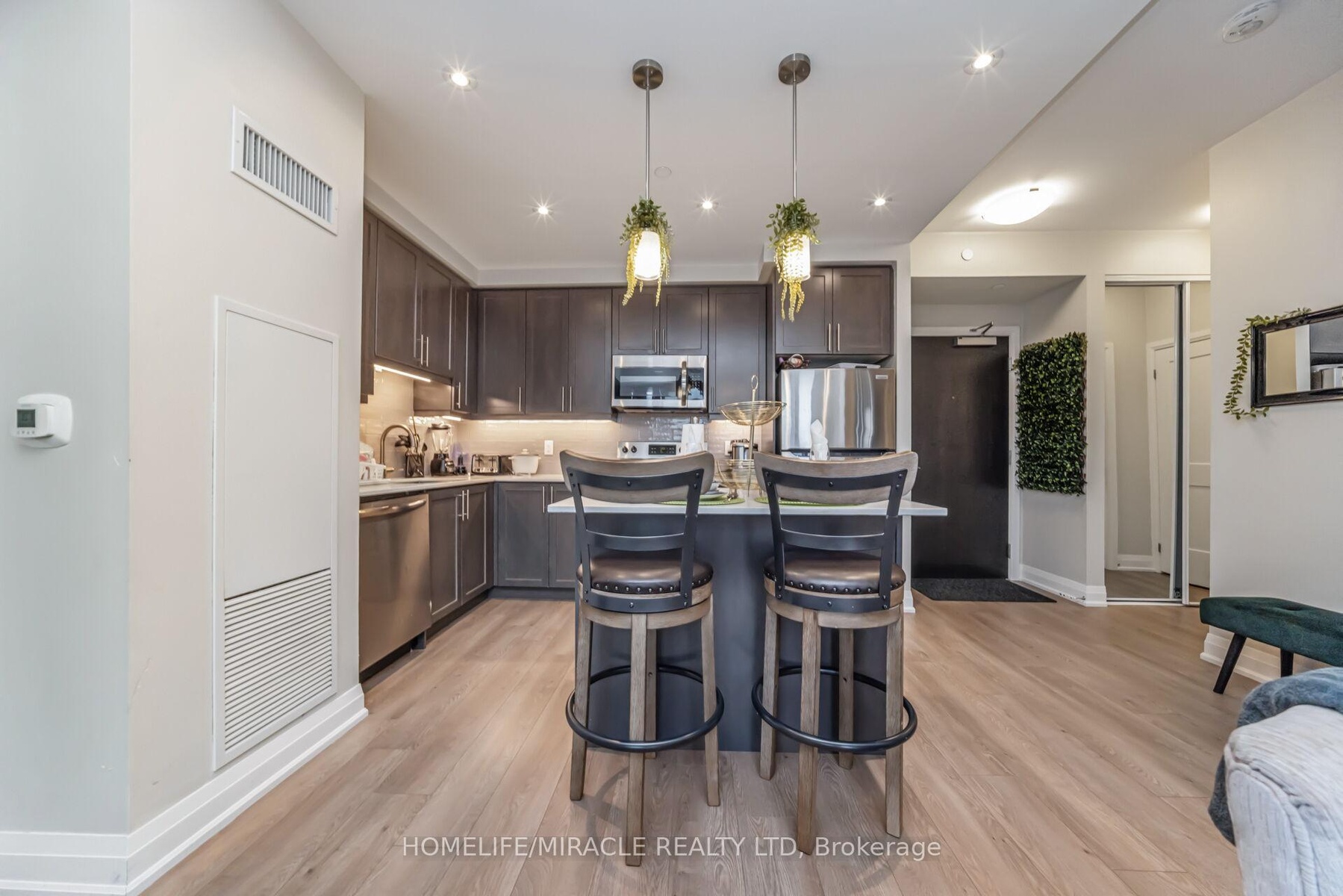 DescriptionDiscover the perfect mix of comfort, style, and convenience at 15 Lynch Street, right in the heart of downtown Brampton. This bright and airy condo features stunning 9 foot floor to ceiling windows that fill the space with natural light, giving it a warm and inviting feel. The modern kitchen is both stylish and functional, with stainless steel appliances, lots of storage, and a handy breakfast bar great for morning coffee or casual meals. The spacious primary bedroom offers a quiet escape, complete with its own 3 piece ensuite for added privacy and comfort. You'll also enjoy the perks of underground parking, a storage locker, and access to top notch amenities. Whether you're walking to nearby schools, grabbing dinner, shopping, or getting on the GO Train, everything you need is just steps away. With easy access to all major highways, this location truly has it all. Don't miss your chance to call this beautiful space home!Amenities- Carpet Free