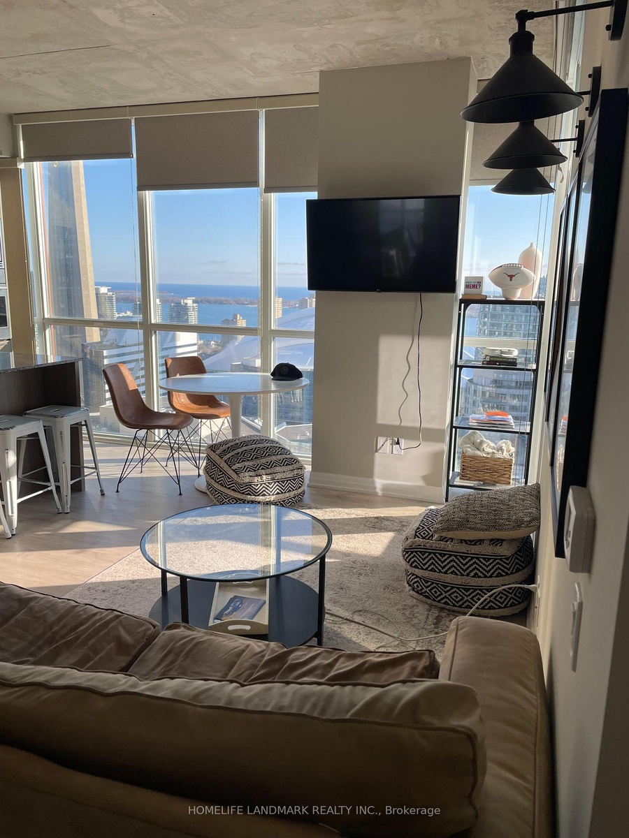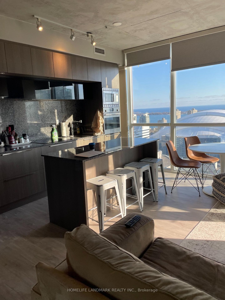 Toronto Downtown Prestigious Address, Bisha Hotel & Residences, One Bedroom+Den+One Bathroom+One Parking+One Locker For Sale! Fully Sunshine Unit With Breathtaking Unobstructed South Waterfront Lake View, Enjoy Sunrise And Sunset. Bisha Flagship Giselle Layout, Open Concept, 9' Exposed Concrete Ceiling , Floor To Ceiling Windows. Bright, Spacious & Luxury, Designer Cabinetry By Munge Leung With Granite Counter-Top In Both The Kitchen & Bathroom, Engineered Hardwood, Marble Bathroom Floor. Large Den Using As 2nd Bedroom, And Parking Spot Is Close To Elevator Entrance. 24 Hr Concierge, Enjoy Hotel Amenities Rooftop Lounge/Infinity Pool, Gym, Balliard Room, Party/Meeting Room, Bike Storage, Bar And Restos. Bisha Hotel Offers Everything Right At Your Front Door, Theaters & Shops As Well As Prestigious Tiff Festival.