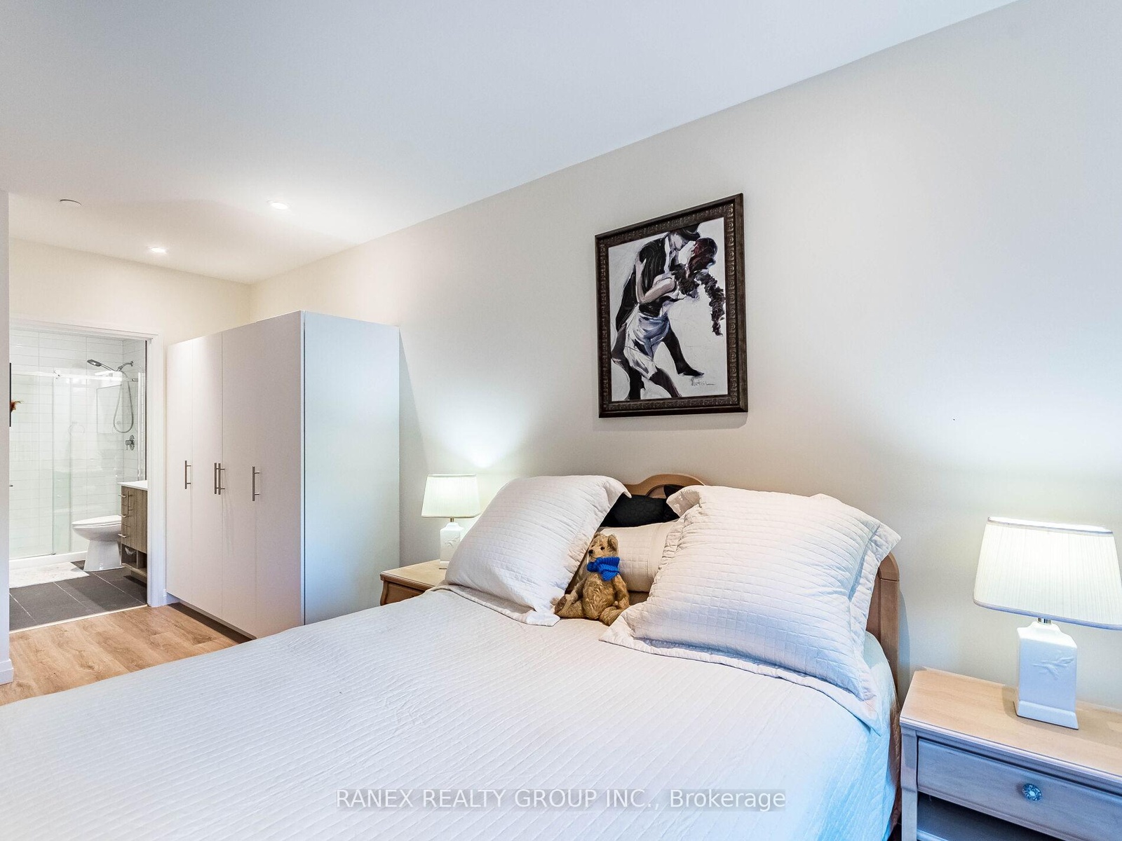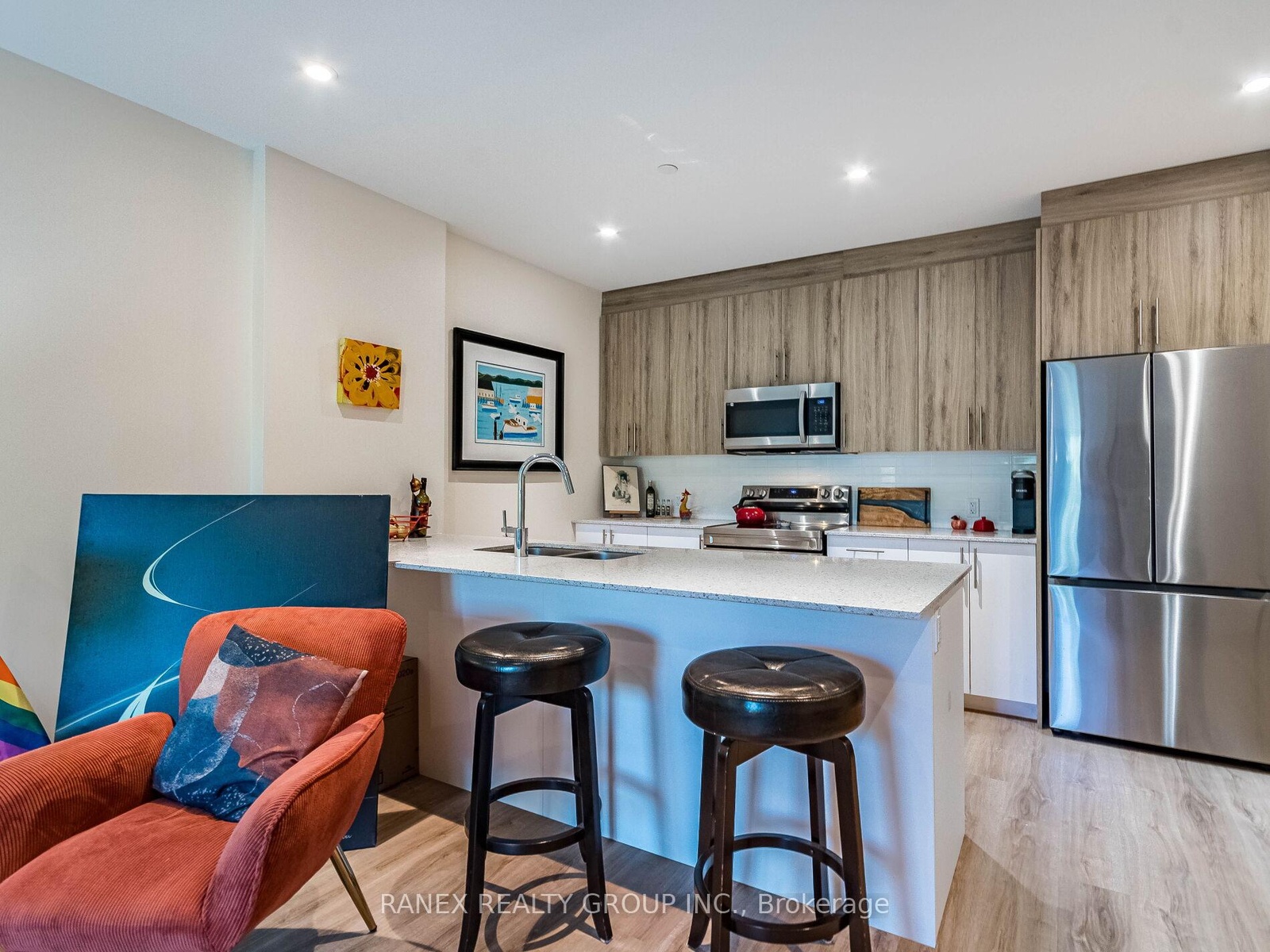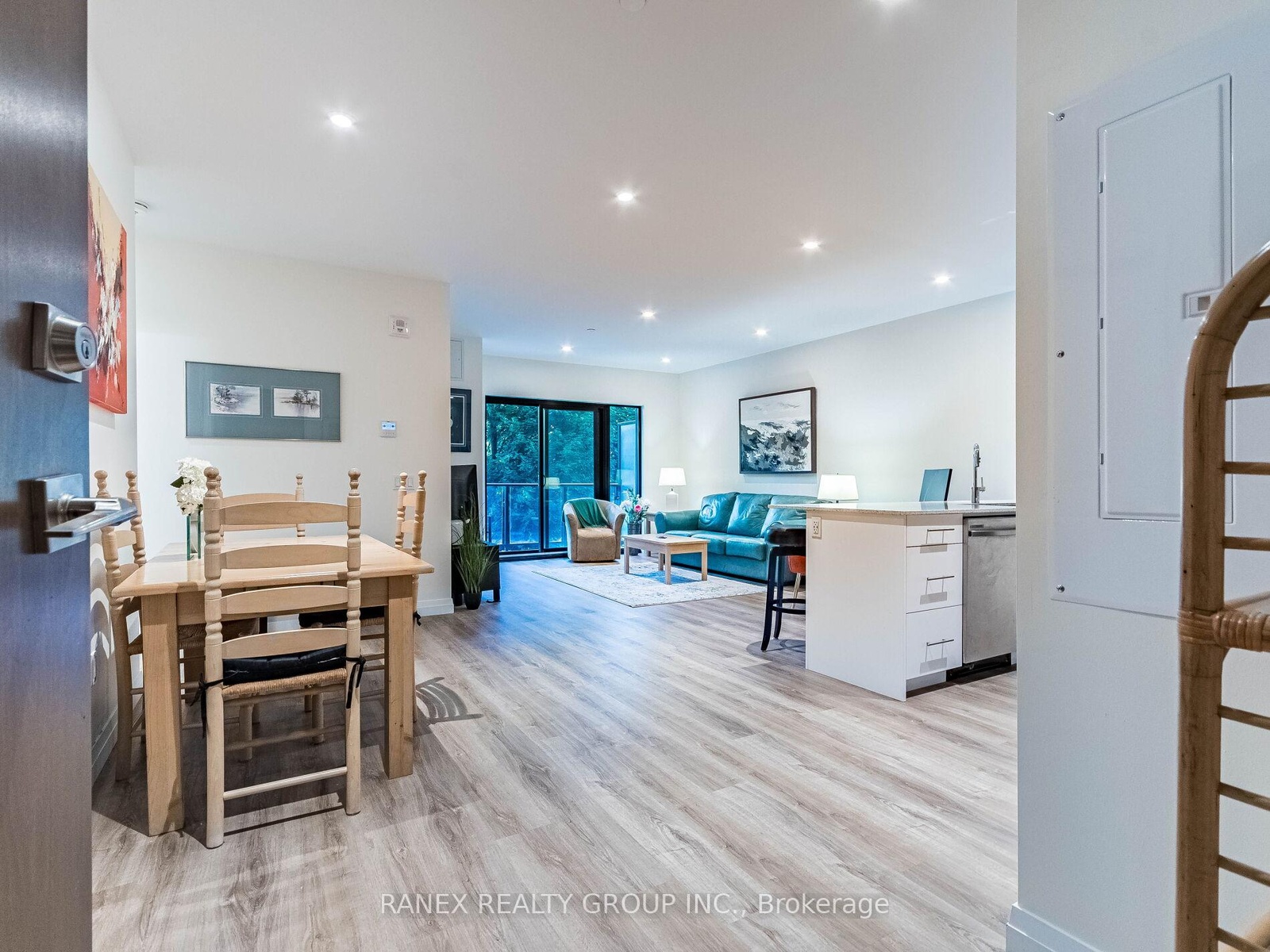 DescriptionWelcome to The Flats at Rainbow Lake! You will love this stunning 2-bedroom, 2-bathroom residence offering over 1,000 sq. ft. of beautifully designed living space surrounded by nature and modern comfort. Featuring hardwood flooring throughout, soothing neutral tones, and an open-concept layout, this home effortlessly balances style and functionality. The spacious primary bedroom includes a luxurious ensuite with a large walk-in shower, while the second bedroom features a custom built-in wardrobe. The modern kitchen is equipped with stainless steel Samsung appliances, seamlessly connecting to the dining and living areas perfect for entertaining or relaxing. Step outside to your private 92 sq. ft. balcony and take in the breathtaking views of the Grand River and Rainbow Lake Conservation Area. The community offers premium amenities such as a fitness center, yoga studio with sauna, bike room, library, party room, social lounge, and pet wash station, ensuring there's something for everyone Located just 2 minutes from Highway 401 and close to Conestoga College, shops, and dining, this exceptional home perfectly combines convenience, tranquility, and modern living. miss your opportunity to call this beautiful unit at The Flats at Rainbow Lake your new home!Amenities- BBQs Allowed