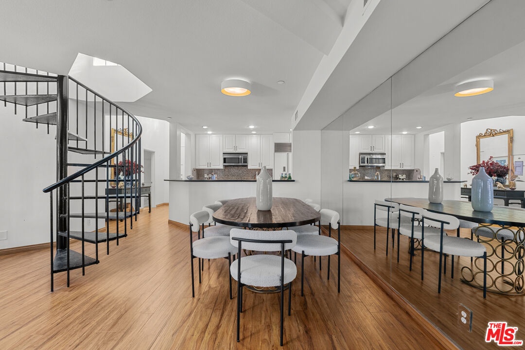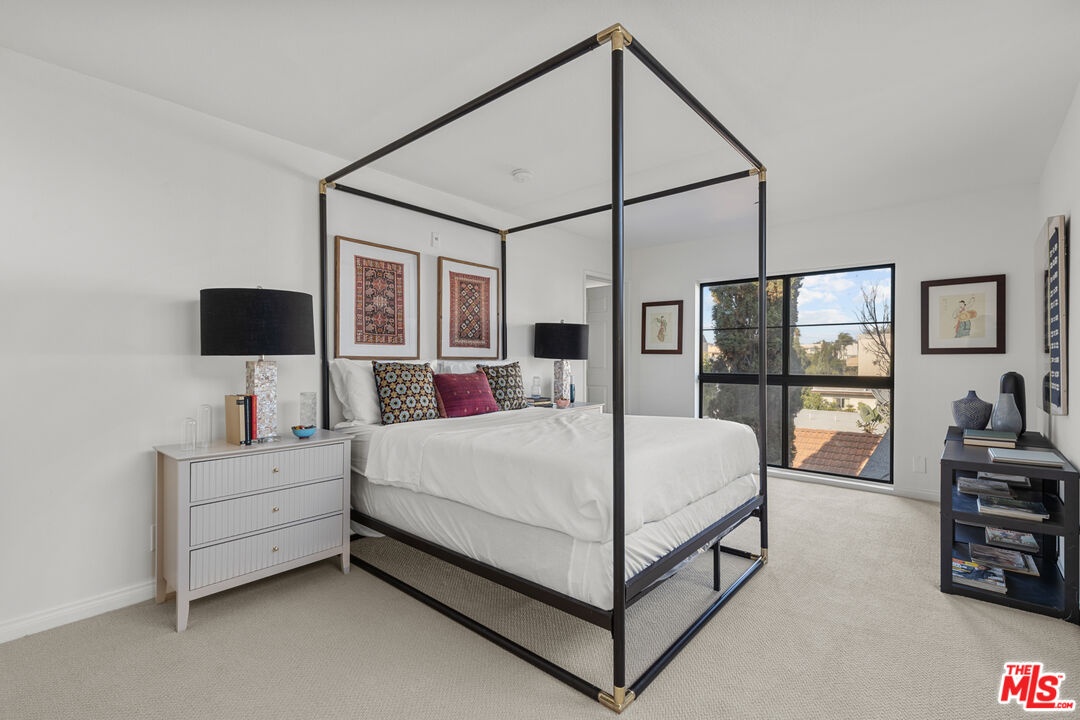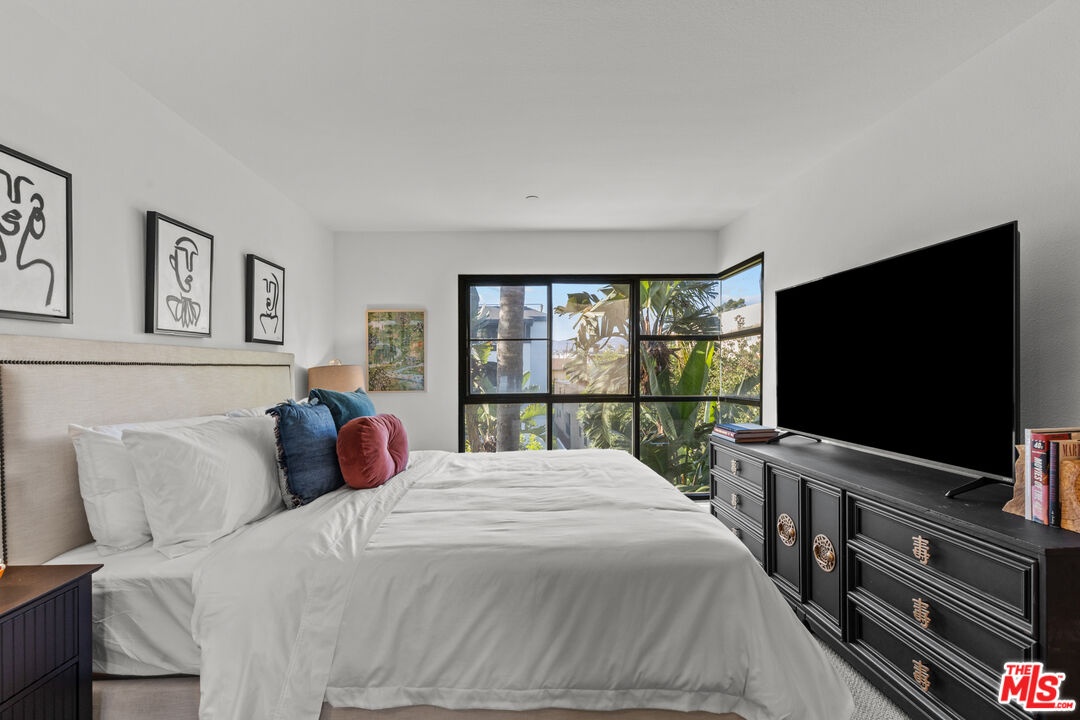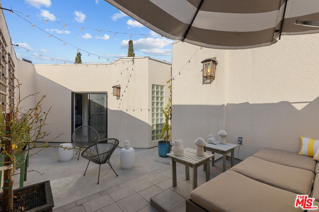 This bright and sophisticated 2-bed, 3-bath top-floor, front-facing corner unit offers the perfect mix of comfort, privacy, and style. High ceilings and large windows fill the home with natural light, while the open layout is ideal for both entertaining and everyday living. Each of the two bedrooms functions as a primary suite, complete with a walk-in closet and en suite bath for ultimate privacy, with one conveniently located on the main level and the other upstairs, plus a powder bath for guests. The kitchen opens to the living and dining areas and extends to a private balcony, perfect for morning coffee or evening relaxation. Upstairs, the spacious and private rooftop deck provides the perfect setting for outdoor dining or lounging under the stars. Additional highlights include in-unit laundry, gated parking, and access to the building's fitness room. Located just moments from Brentwood's best shops, restaurants, and cafes, this home combines modern design with an unbeatable location.