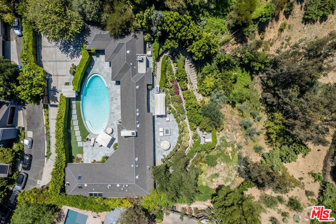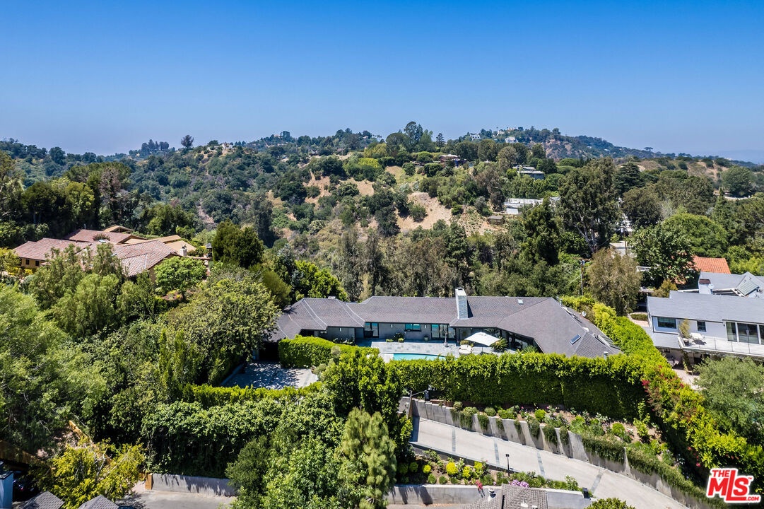 Tucked away on a quiet cul-de-sac just off iconic Mulholland Drive, this unique 4-bedroom, 3-bathroom mid-century home offers an unmatched blend of privacy, serenity, and convenience in Beverly Hills. Situated on a 32k sq ft lot, this elegant residence sits behind a private gated driveway, creating an exclusive retreat surrounded by lush, landscaped grounds and peaceful hillside views. Step inside to discover a light-filled contemporary interior that perfectly balances timeless mid-century design with modern sophistication. The open-concept living and dining areas feature clean lines, oversized windows, and a seamless indoor-outdoor flow, ideal for both quiet relaxation and stylish entertaining. The gourmet kitchen is tastefully appointed with premium appliances, sleek cabinetry, and a large center island. The primary suite offers double glass doors offering access to the outdoor pool area. Three additional bedrooms offer flexibility for guests, a home office, or growing families. Step outside to your private oasis....a large, sparkling pool surrounded by mature foliage and grassy area with multiple lounging and dining areas that invite year-round outdoor living. With its expansive lot, the property also presents an exciting opportunity for an ADU build, offering excellent add-on value and flexibility for future expansion or income potential with close proximity to freeways, shopping, dining and top-rated schools. Don't miss this rare opportunity to own a slice of classic California living re-imagined for the modern lifestyle.