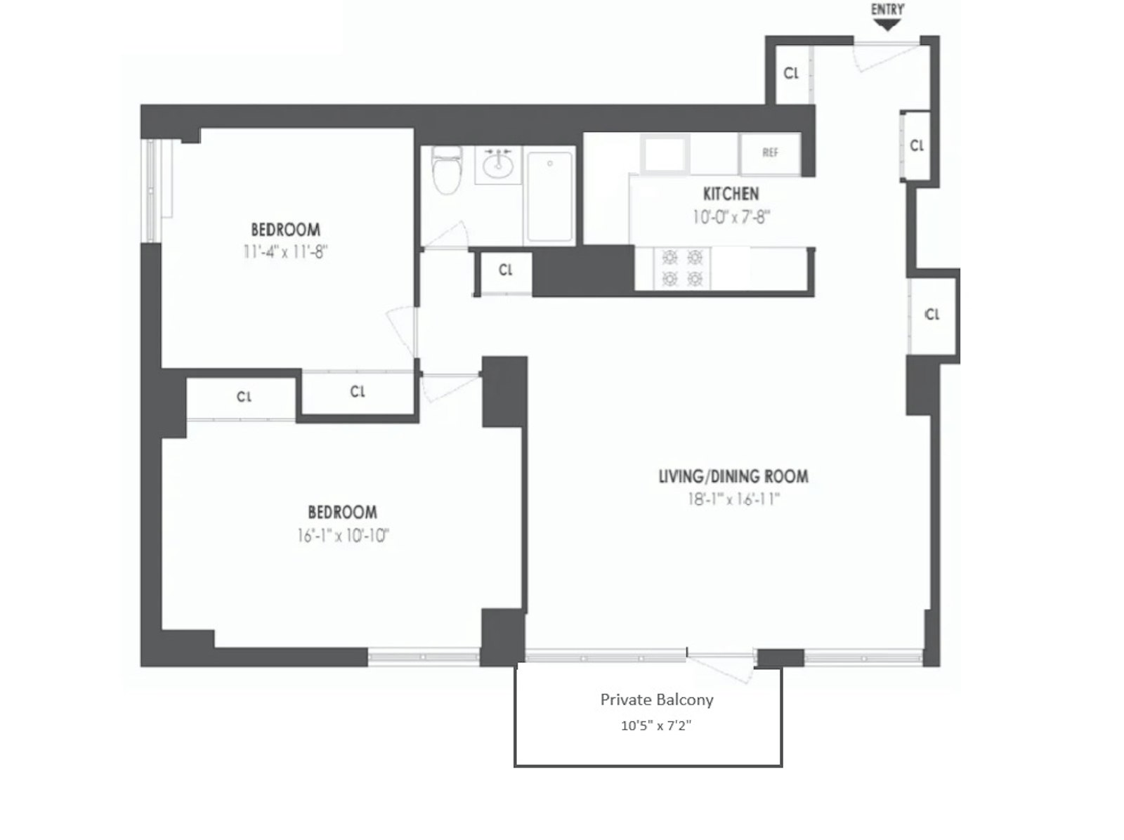 One of the best true two-bedroom values in all of Downtown! This bright and spacious home offers a wealth of desirable features: a large living area, oversized private balcony, sizable ventilated kitchen (with the option to open it completely to the living room), open and sunny North/Southeast exposures, abundant closet space, and generous bedroom sizes - the primary easily accommodates a king-sized bedroom set.