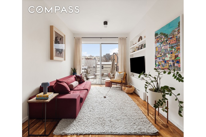This fully renovated, 2-bed, 1.5-bath duplex on the border of Clinton Hill and Bed-Stuy offers a sun-drenched space with open views and a south-facing private terrace.