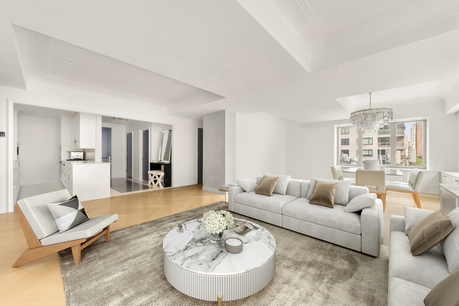 The Chatham, Designed by the iconic Robert A.M. Stern, exudes timeless elegance and sophisticated charm. As one of the Upper East Side's most esteemed condominiums, this is an opportunity not to be missed. Residence 6C is an exquisitely renovated pristine two bed, three bath home, featuring unparalleled city views to the North and East, a versatile dining room/third bedroom, a plethora of custom California Closets for all of your storage needs, Chevron white oak flooring throughout, and Buster + Punch hardware.