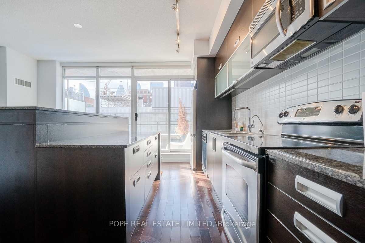 DescriptionRezen Condominium. Completed in 2008 by Times Group. A 13 storey quiet, boutique condominium located on a tranquil city street in the very desirable St Lawrence Market. Steps to TTC 504 A & B streetcars, 503 bus, St James Park, St James Cathedral, the St Lawrence Market & the shops & restaurants of St Lawrence Market, Corktown & The Distillery District. The apartment features approximately 618 sf of interior space & a 120 sf west facing terrace (15' x 8'),1 bedroom & den, 1 bath, laminate floors throughout, a large kitchen perfect for entertaining complete with stainless steel appliances, centre island & stone counters. 1 large storage locker (10' X 6') included. The building showcases 24hr concierge, a fitness centre, yoga studio, media room, meeting room, a lounge, dining room, a rooftop deck & lounge complete with BBQ station & visitor parking.Amenities- Carpet Free
