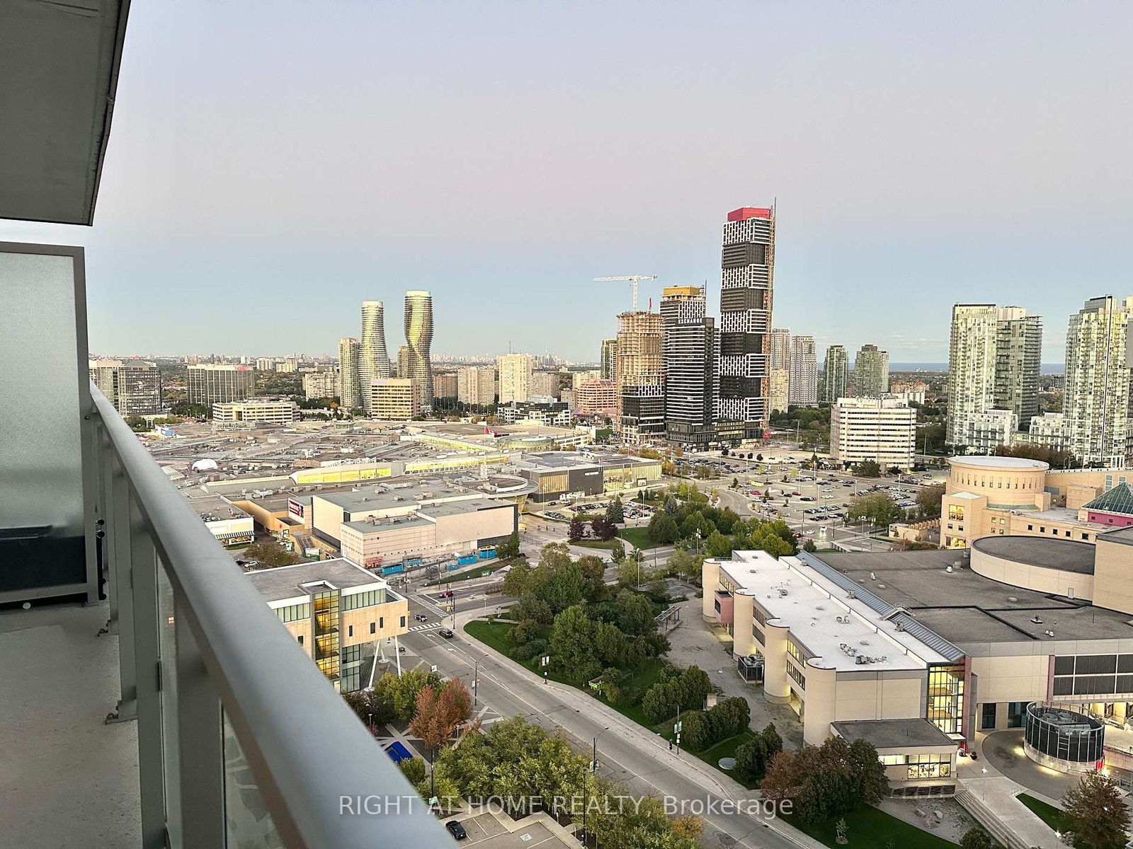 Experience modern living at Daniels Limelight North! This stunning condo offers southern exposure with a large balcony perfect for soaking unobstructed views. This 1-bedroom + den unit comes with 1 parking spot and a locker. Enjoy 9-ft ceilings, updated light fixtures, and more. Located just steps from Square One, Sheridan College, and the bus terminal, with easy access to all major highways. Building amenities include a full basketball court, fitness centre, gym, media lounge, home theatre, and rooftop terrace.