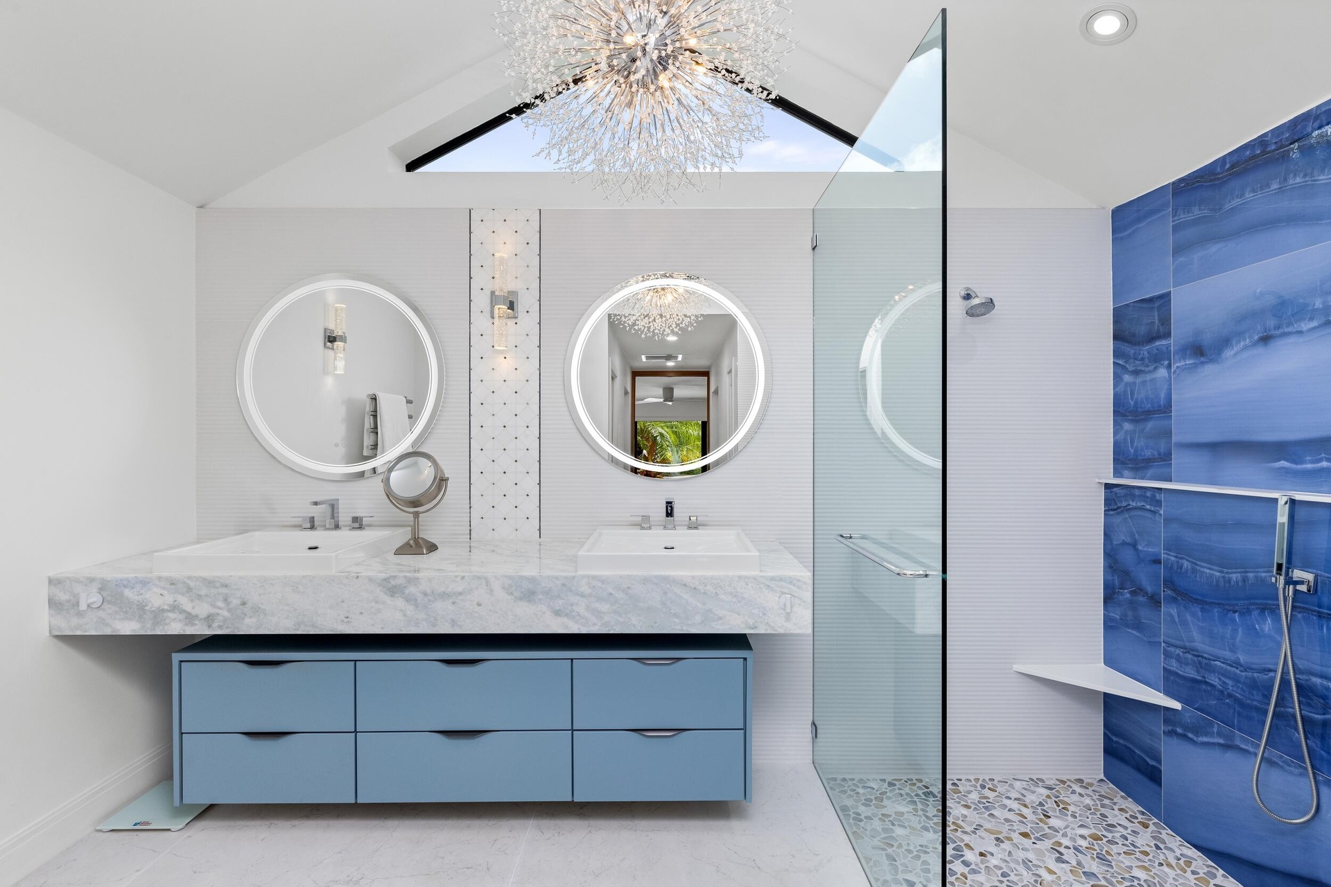 One-story captivating custom contemporary home in Boca Bay Colony, a highly esteemed waterfront community. Fully renovated in 2022, this 4 bedroom, 2.1 bathroom, 2-car garage house blends modern elegance with chic and casual design in the heart of Boca Raton. Impeccably designed interiors and lushly landscaped exteriors create the perfect backdrop for living and entertaining. Attention to detail and no expense spared, this home has new impact windows and doors, a brand new metal roof, and porcelain floors throughout. The top-of-the-line custom kitchen is an entertainer's dream with high end GE Monogram stainless steel appliances and an undercounter wine cooler. The large island boasts waterfall edge quartz countertops and an induction cooktop with vent.