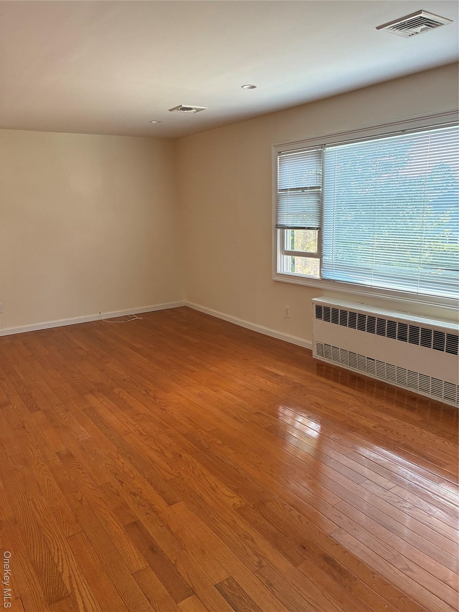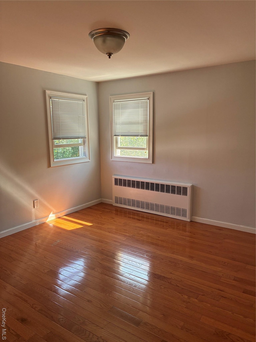 - Empty room featuring radiator and hardwood / wood-style flooring