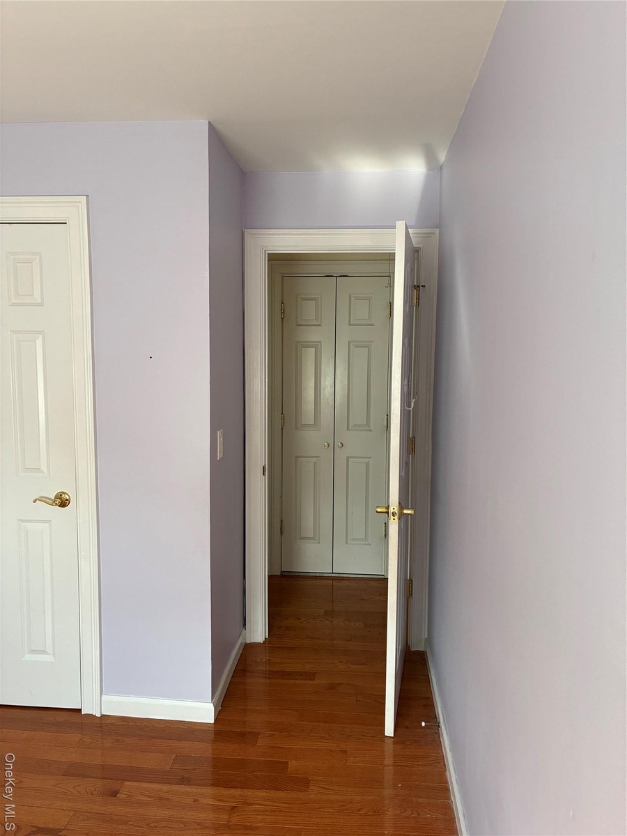 - Empty room with wood finished floors and baseboards