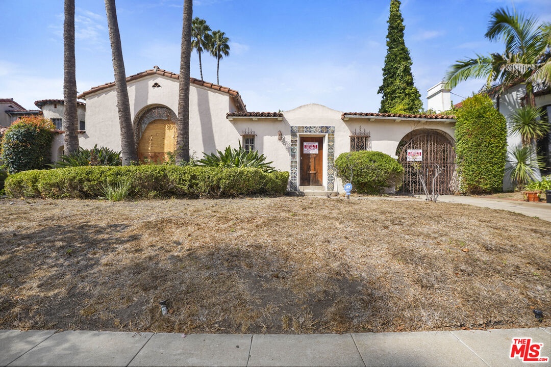 Stunning Spanish Revival home located in the heart of Hancock Park! This one of a kind property features dramatic 15ft vaulted arched ceilings, stained glass windows, intricate moldings and a marble mantle with a gas fireplace, which is decorative. The home features 3 bedrooms and 2 full baths. Set behind wrought- iron gates includes a tranquil courtyard with fountain, an abundant architectural character. A rare opportunity to restore a piece of Hollywood's golden era.