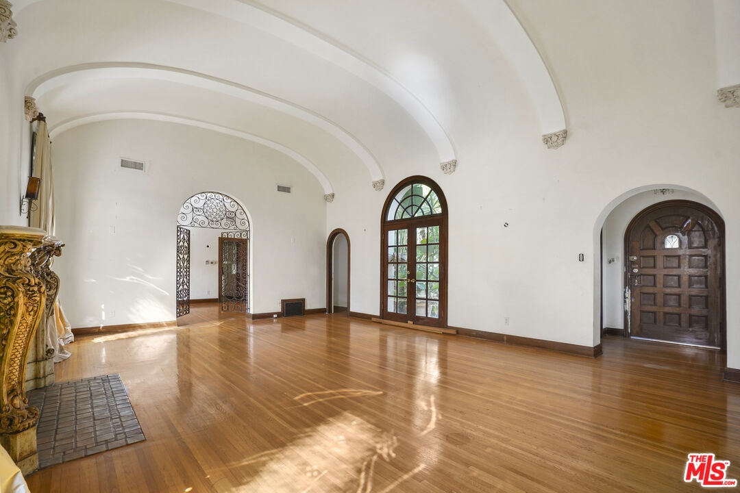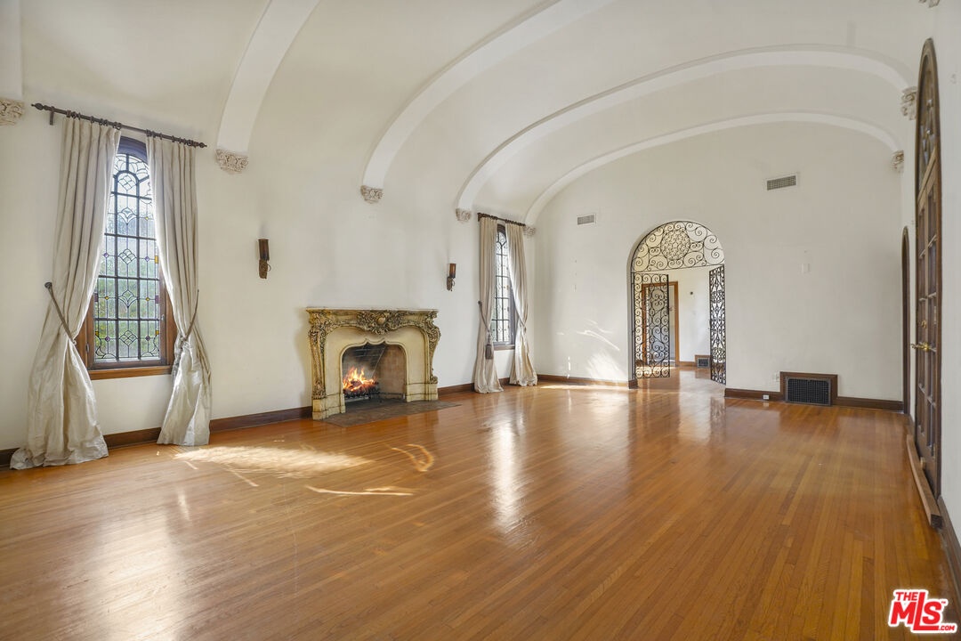 DescriptionStunning Spanish Revival home located in the heart of Hancock Park! This one of a kind property features dramatic 15ft vaulted arched ceilings, stained glass windows, intricate moldings and a marble mantle with a gas fireplace, which is decorative. The home features 3 bedrooms and 2 full baths. Set behind wrought- iron gates includes a tranquil courtyard with fountain, an abundant architectural character. A rare opportunity to restore a piece of Hollywood's golden era.NeighborhoodMore listings:
