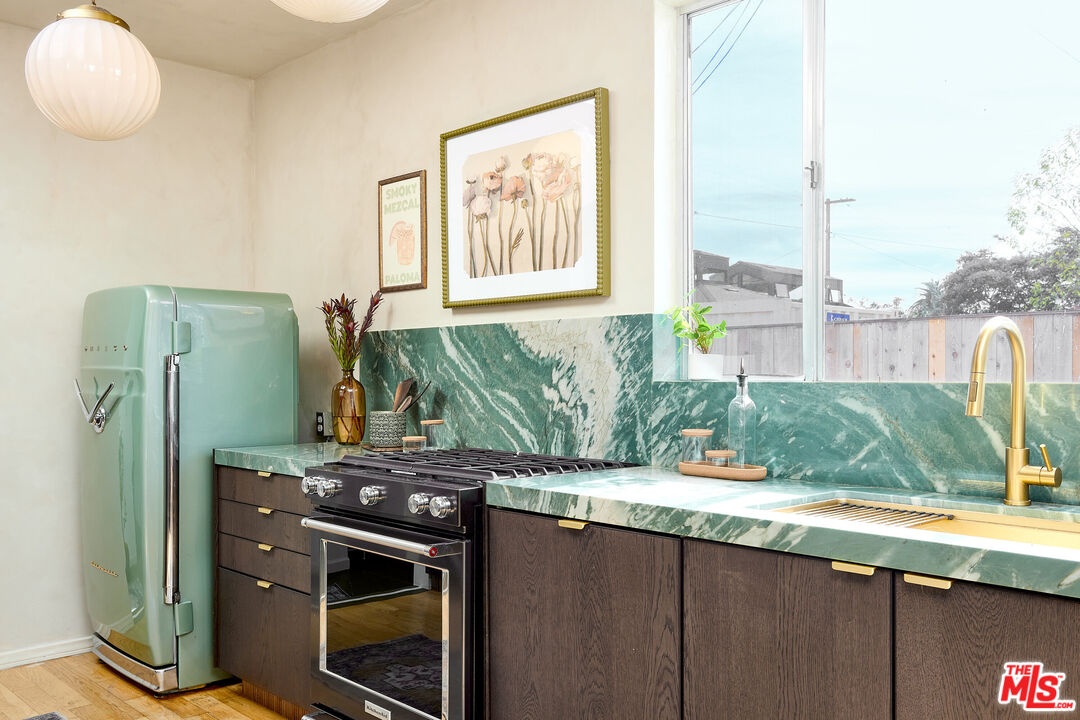 Welcome to your own private oasis in the heart of Venice Beach, featuring a beautifully updated main house and detached guest house just a short stroll from the buzzing energy of Abbot Kinney. This one-of-a-kind property blends timeless charm with stylish modern updatesperfect for those looking to live, work, and relax in one of LA's most iconic neighborhoods.The landscaped main house offers three bright bedrooms and two full bathrooms, plus a lofted bedroom accessed by a statement staircaseideal as a creative space, guest room, or home office. The newly renovated kitchen is a showstopper, with custom cabinetry, quartz countertops, and designer lighting that elevates the entire home.Enjoy ultimate privacy in the lush yard with mature landscaping, only one direct neighbor, and a peaceful court street on the other side. Original character details, including a vintage fireplace, add warmth and soul throughout.Tucked away in the back, the detached guest house with a full bathroom offers endless flexibilityguest suite, studio, or potential rental income. With alley access and private parking, this is Venice living at its absolute best.Don't miss this rare gemfull of personality, style, and prime walkability!