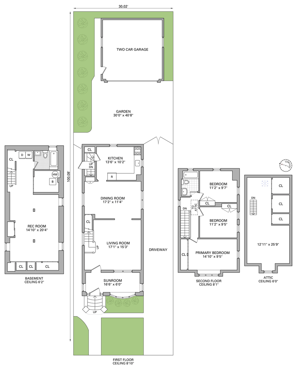Rare to market, fully detached single family 3 Bed, 2 Bath with attic and full finished basement measures 1,834 SF interior +342 SF attic totaling a gross 2,176 SF interior. The 30x100 lot offers a private drive that can accommodate 2 cars plus 2 car garage and garden.