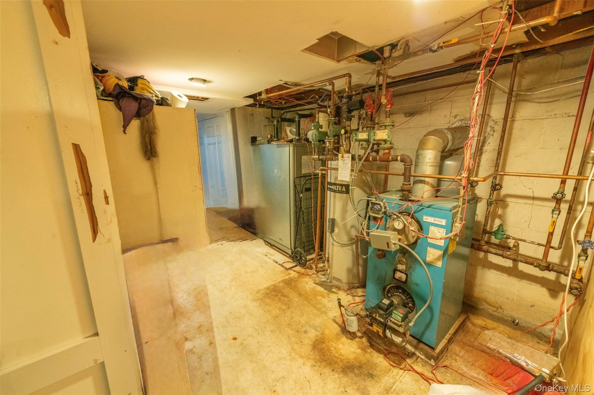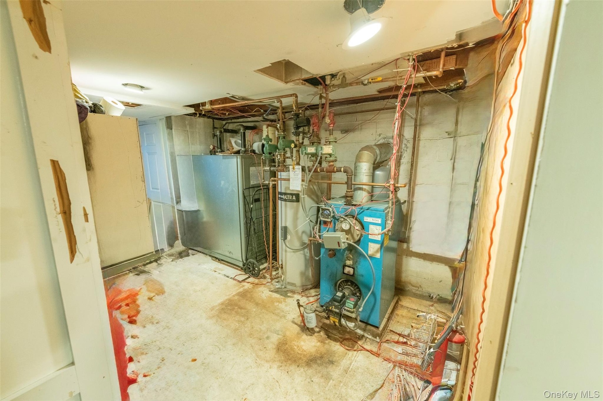 - Kitchen featuring light countertops, white cabinets, and a heating unit