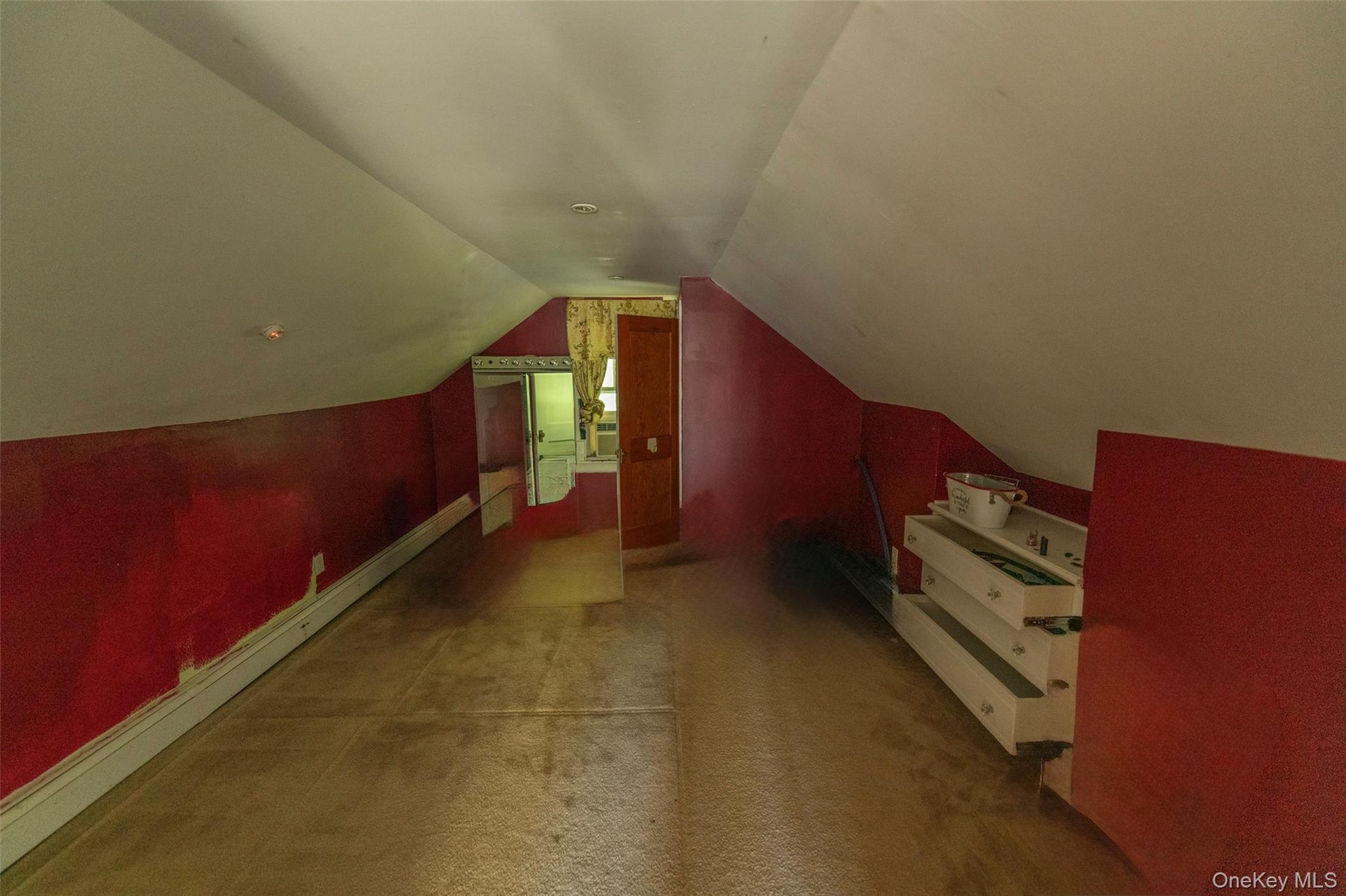- Bonus room featuring a baseboard heating unit, lofted ceiling, and carpet