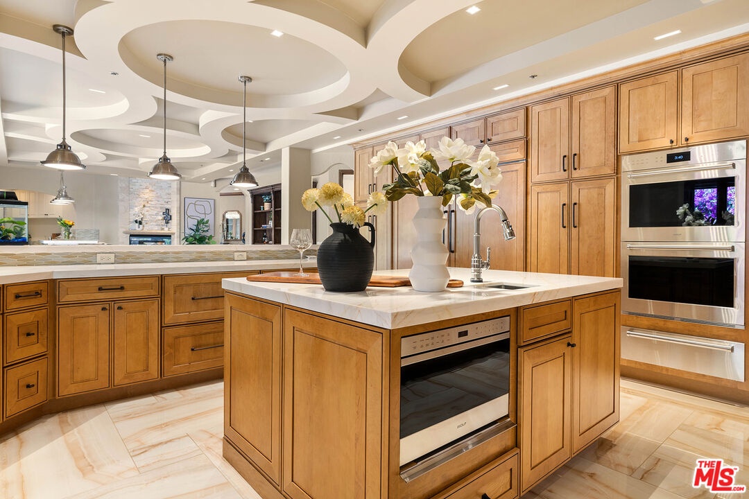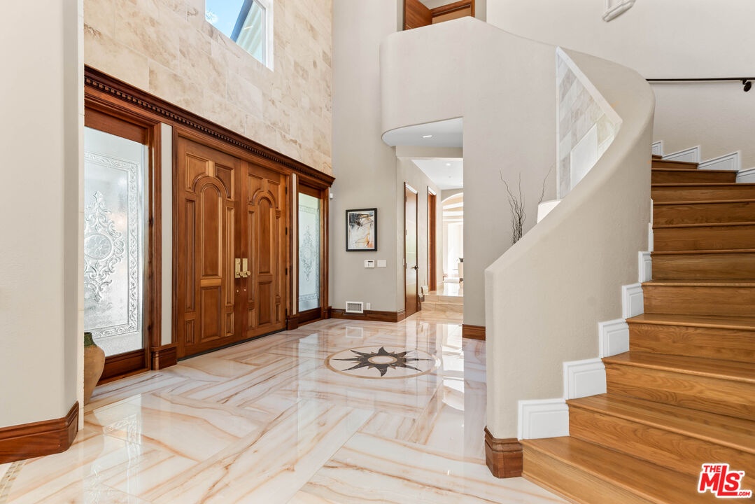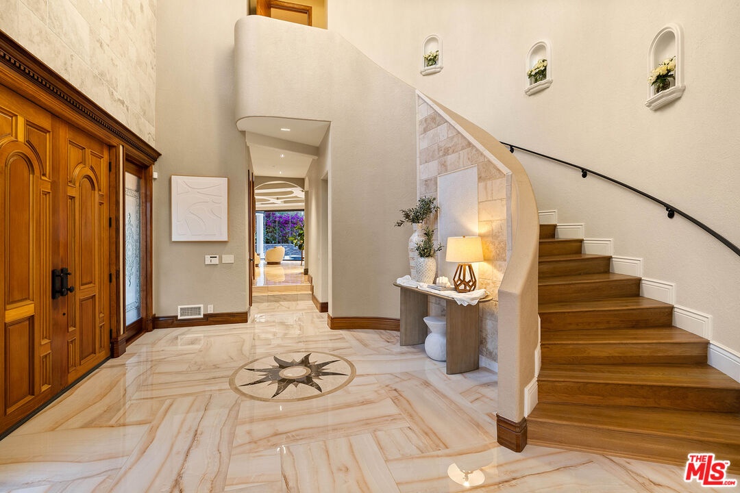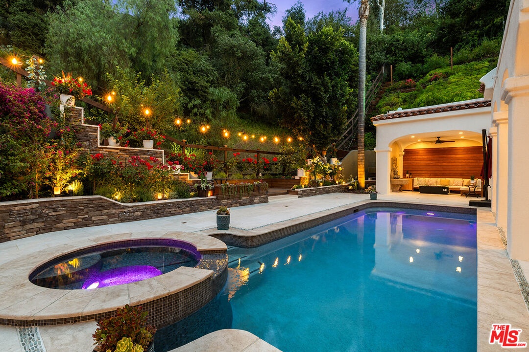 DescriptionStep through the grand two-story entry with stunning chandelier, where soaring ceilings and architectural drama set the tone for the home. Adjacent living room invites both formal entertaining and intimate gatherings, while a conveniently located first-floor en-suite bedroom and private office offer comfort and flexibility for modern living. Upstairs, three additional generously proportioned en-suite bedrooms provide comfort and privacy. The primary suite is a true retreat, featuring expansive his-and-hers closets, dual private balconies, and a luxurious spa-inspired bath adorned with custom glasswork, a freestanding soaking tub, and a bidet. At the heart of the home, the chef's kitchen is a true showpiece, outfitted with top-of-the-line appliances, expansive counter spaces enabling efficient preparations for groups both large and small. Designed for culinary artistry the kitchen connects directly to entertaining spaces including the pool, covered outdoor loggia and a stylish bar, perfect for lively elevated entertaining or effortless smaller gatherings. Privately gated and set on a secluded flag lot quietly well distanced from Coldwater Canyon Drive, this estate has been completely re-envisioned and masterfully re-constructed over a two-year transformation, offering a rare combination of privacy, seclusion, and modern sophistication. The grounds unfold into a completely private backyard sanctuary with lush gardens, curated landscaping, sparkling pool and spa, and outdoor kitchen. Multiple covered lounges and al fresco dining areas overlook an intimate live-performance stage with professional sound perfect for private concerts and unforgettable gatherings. Bordered by acres of natural terrain and wildlife, the property feels worlds away while remaining uniquely convenient to both Beverly Hills as well as the Valley, with seamless access to world-class amenities. This is more than a home - it is an unparalleled lifestyle, a sanctuary designed for those who seek beauty, privacy, and distinction.Amenities- Gourmet kitchen