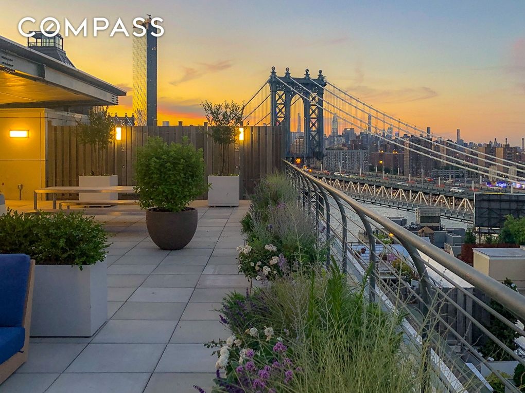 Welcome to this modern loft residence located on one of the most charming, Belgian block and tree lined streets in vibrant DUMBO, Brooklyn. This elegantly updated home is a masterpiece of contemporary design blended with timeless allure, perfect for those with a discerning taste for luxury and comfort. Venture inside this exquisite one-bedroom two bath plus home office, spacious enough to utilize as a second bedroom, with its adjacent full bath and be immediately captivated by the meticulous craftsmanship and high-end finishes that define this stunning home. Soaring 11’ concrete beamed ceilings and over-sized windows flood the primary bedroom and living space with eastern sunlight. The newly sanded and varnished bamboo floors gleam with elegance, complemented by fresh window sills and custom valance trim that add a refined touch to each room. The kitchen is a culinary enthusiast's dream, featuring refinished cabinets that offer ample storage, highlighted by a striking new porcelain backsplash tile wall. It comes equipped with top-of-the-line SubZero, Thermador and Viking appliances including a Bosch 800 Series dishwasher in sleek stainless steel, ensuring that every culinary endeavor is both stylish and efficient. For the wine connoisseur, a brand new 15” wine chiller by Icevival gracefully accommodates up to 29 bottles, ready for entertaining or a quiet evening at home. The modern laundry experience is redefined with the inclusion of a full-size LG laundry tower, fully loaded and nestled within a newly remodeled laundry room. This space boasts new lighting, premium ceiling tiles, and a chic sink with updated hardware, providing both functionality and flair. The primary bathroom is a retreat of serenity, adorned with new mosaic tiles, a contemporary lighting fixture, and a tastefully designed pendant, creating an atmosphere of spa-like tranquility. Throughout the unit, new lighting and switches have been thoughtfully installed to enhance the ambient elegance and efficiency of the home. This exquisite property is not just a place to live, but a canvas of modern elegance and sophistication. Experience the pinnacle of refined living at this exceptional Washington Street address. Your dream home awaits. Built in 1910 as a factory and converted to a luxury condominium in 2005, 70 Washington Street offers residents a host of attractive amenities: 24-hour attended lobby, onsite fitness center, package room, and a recently renovated 7,500SF landscaped roof deck with spectacular views for lounging and socializing. The superlative location in the heart of the Brooklyn Waterfront District, mere minutes from the gorgeous 85-acre Brooklyn Bridge Park on the East River with tons of events and activities. Also nearby are acclaimed restaurants, trendy eateries, Time Out Market, eclectic boutiques, Empire Stores, art galleries and theater spaces, as well as the A, C, F, 2 and 3 trains, Citi Bike stations and the NYC Ferry at Dumbo/Fulton Ferry. Please note that there is $326 monthly assessment in place through December 2026.