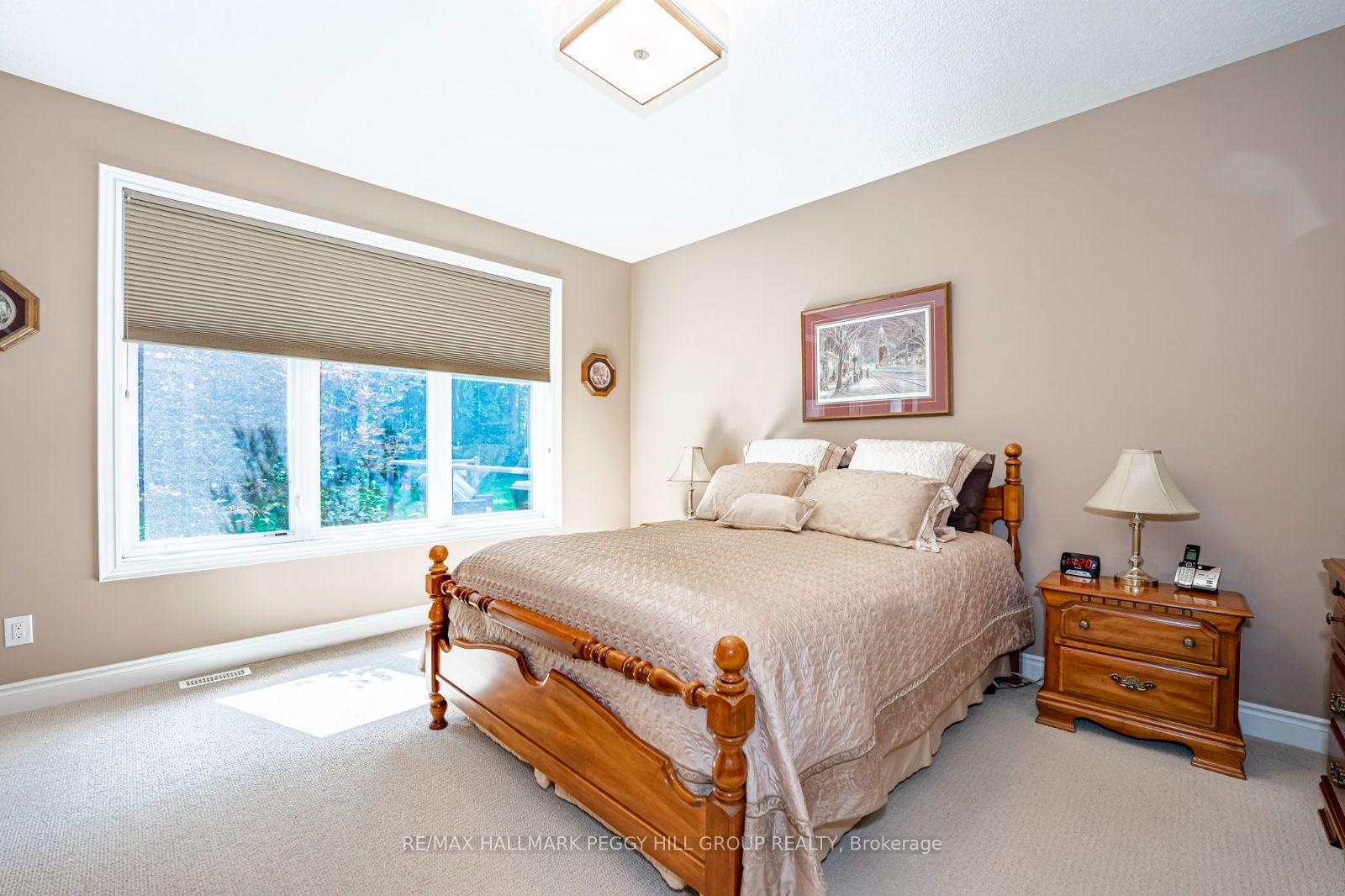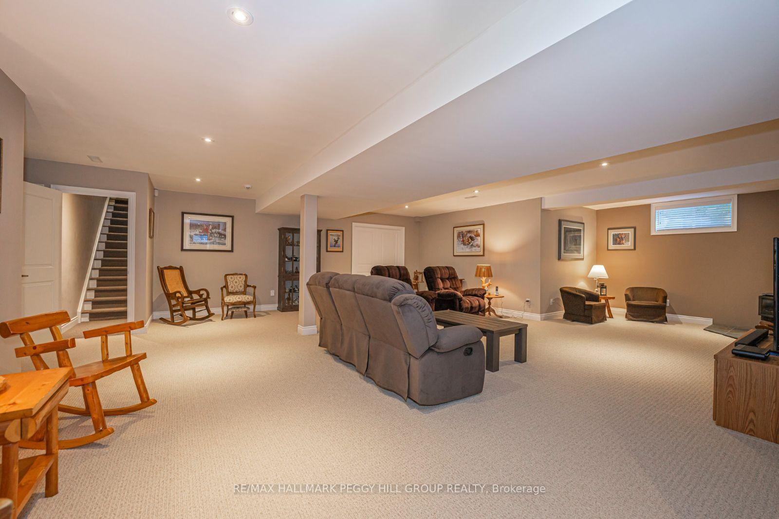 ELEGANTLY CRAFTED EXECUTIVE BUNGALOW ON HALF AN ACRE IN A SOUGHT-AFTER NEIGHBOURHOOD! Designed to impress, this one-of-a-kind custom home delivers upscale living in a highly coveted neighbourhood surrounded by natural beauty. Set on a 104 x 208 ft lot just 5 minutes from Barrie, with quick access to trails, Vespra Hills Golf Club, and Snow Valley Ski Resort, this property showcases exceptional curb appeal with a stately brick and stone exterior, stone walkway, covered front porch, and striking front door framed by elegant architectural detailing. A triple-wide driveway and three-car garage provide ample parking to match the home's grandeur. Built with 2" x 6" kiln-dried lumber, a silent floor system, thermal pane windows, Energy Star rated low E glass, and durable aluminum soffits and eaves, this home is as solid as it is stylish. The 1,900 sq ft main floor features 9 ft ceilings, crown moulding, pot lights, solid interior doors, and an upgraded trim and millwork package. A gourmet kitchen stands out with granite counters, stainless steel appliances, soft-close cabinetry, a custom backsplash, and a wood-toned island contrasted with white cabinets. A bright breakfast area with a walkout to the deck and a formal dining room both feature elegant arched windows. The great room offers a stone fireplace with a wood mantle, while the primary suite includes a walk-in closet and an ensuite with quartz counters, a double vanity, and a glass-enclosed shower. Additional features include main floor laundry with garage access, upgraded toilets and faucets, hardwood and ceramic tile flooring, and a finished basement with rec room, fireplace, office, exercise room, and full bath. The backyard offers a forest backdrop, an expansive deck, a retractable awning, and a multi-zone irrigation system. Equipped with an HRV system, 200-amp panel, alarm, sound system, central vac, and Generac generator, every inch of this home reflects thoughtful design and an exceptional standard of living!