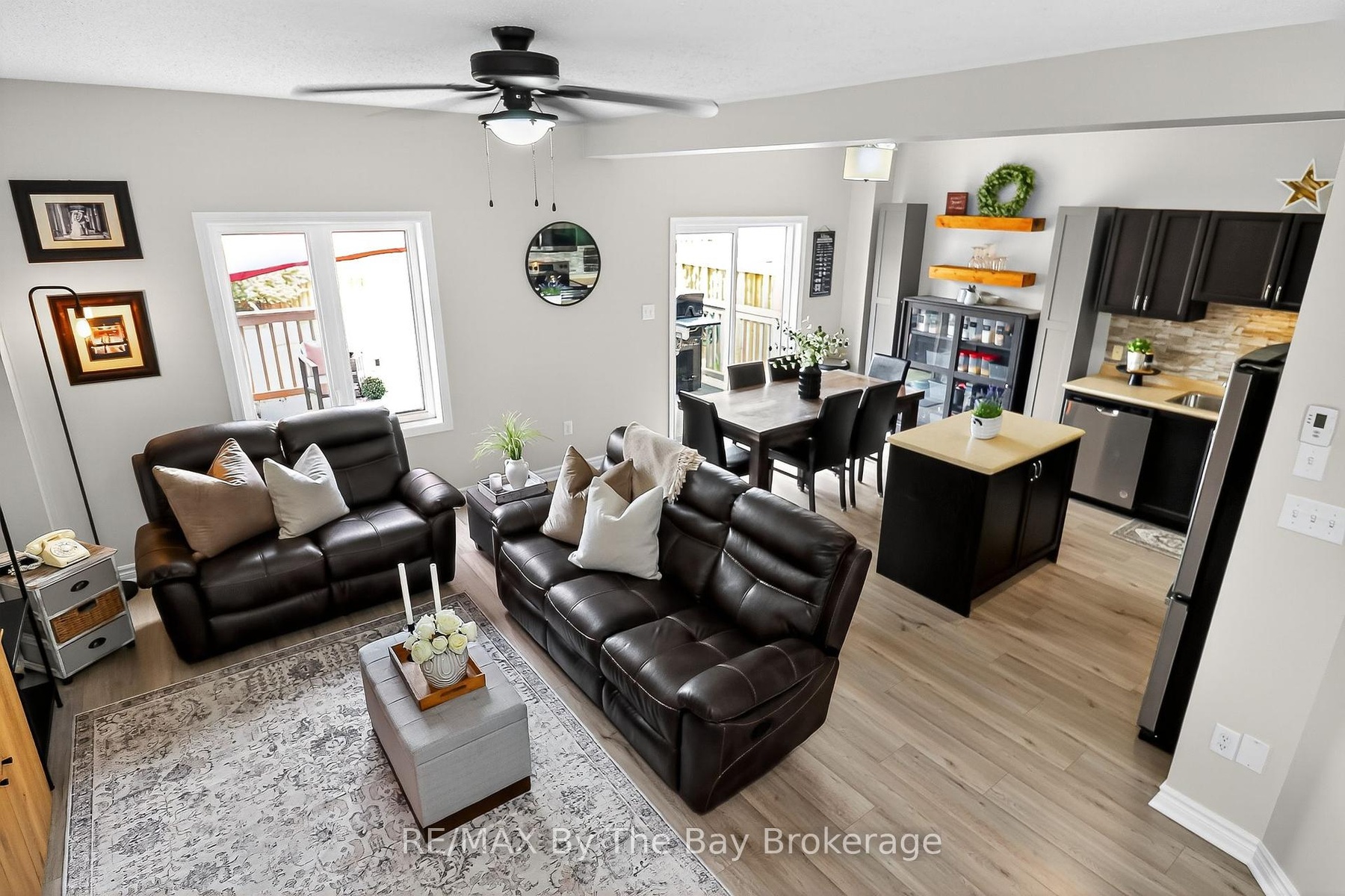 Fully finished Detached home! Collingwood's Pretty River Estates! Open concept main floor with Kitchen/Living Room/Dining, new gorgeous flooring recently installed. 2 piece bathroom on main, walkout to deck and fully fenced in rear yard. Upstairs has 3 bedrooms and 2 full bathrooms, large primary bedroom with ensuite and walk-in closet. Lower level is fully finished with a family room, 2-piece bathroom and spacious laundry area, Central Air, HRV, all appliances included. Close to both High Schools and trails! Tastefully decorated and ready for a new family to call it home!