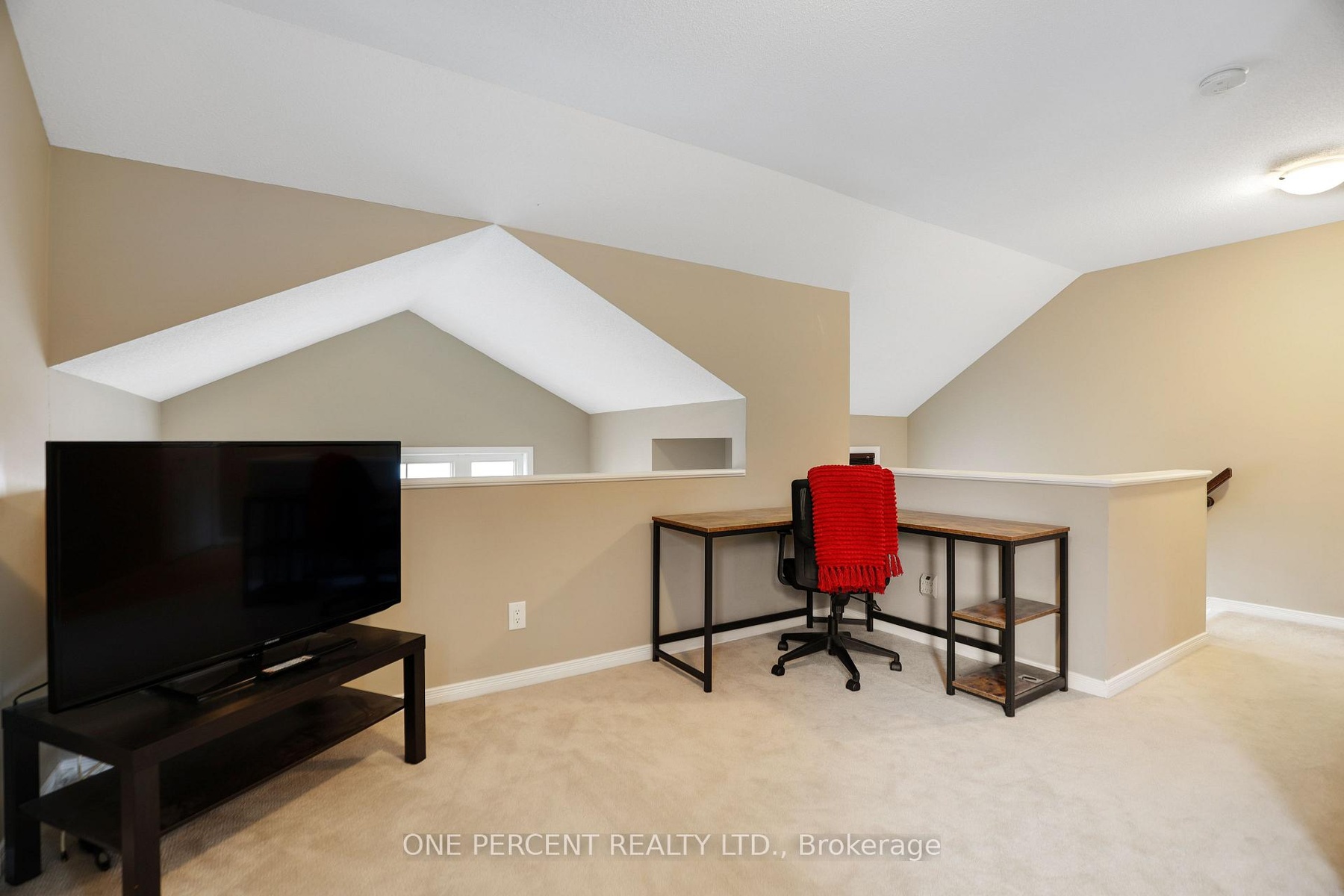 DescriptionWelcome to 382 Galston Private, a rarely offered upper-end beautifully designed upper-level terrace home in the sought-after community of Chapel Hill South. Offering approximately 1,500 sq. ft. of stylish and sun-filled living space, this 2-bedroom plus loft home perfectly combines comfort, functionality, and modern appeal. The bright open-concept main level is ideal for both everyday living and entertaining, featuring quality flooring and large windows throughout. The inviting living room impresses with its striking two-storey windows and vaulted ceiling, filling the space with natural light. The adjoining dining area flows seamlessly into a generous kitchen with stainless steel appliances, ample cabinetry, and plenty of counter space, along with a cozy eating area and patio doors leading to a private balcony. A convenient powder room and in-unit laundry complete the main floor. Upstairs, the spacious primary bedroom offers a walk-in closet, cheater access to the full bathroom, and a second private balcony. A well-sized second bedroom and a versatile loft area, perfect for a home office or lounge complete the second level. Nestled in a quiet, mature neighborhood surrounded by plenty of evergreen trees, this home is just steps away from beautiful trails and walking paths. Close to public transit, schools, parks, and shopping, it offers the perfect combination of space, style, and convenience. Don't forget to checkout the 3D TOUR and FLOOR PLAN. Status Certificate On File. Call your Realtor today to book a private showing!Amenities- Central Vacuum