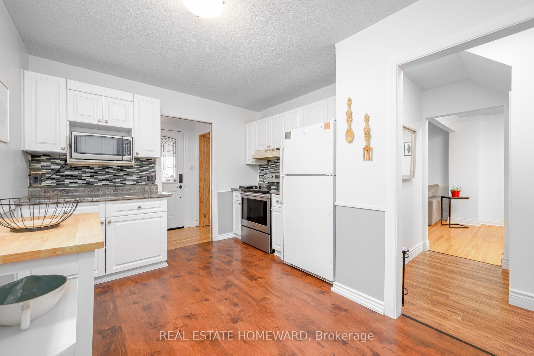 CHARMING 1.5-STOREY HOME, NICELY SITUATED IN PETERBOROUGH'S DESIRABLE SOUTH END. WHETHER YOU'RE BUYING YOUR FIRST HOME OR LOOKING TO DOWNSIZE, THIS WELL-MAINTAINED PROPERTY OFFERS A FANTASTIC OPPORTUNITY. THE MAIN FLOOR HAS A LIVING ROOM, A BRIGHT & FUNCTIONAL KITCHEN, A SEPARATE DINING AREA AND A FULL 4PC BATH. UPSTAIRS YOU WILL FIND THE PRIMARY BEDROOM AND 2ND GUESTROOM, BOTH OFFER UNIQUE STORAGE WITH LOTS OF CLOSET SPACES. THE BASEMENT IS FINISHED WITH A 3PC BATH, DEN OR 3RD GUESTROOM, REC SPACE, LAUNDRY AND UTILITY STORAGE. YOU WILL ENJOY THE QUAINT SITTING AREA AT YOUR FRONT DOOR, NICE SIZED DECK IN THE BACK AND SPACIOUS BACK AND SIDE YARDS. CLOSE TO ALL AMENITIES, TRAILS, PUBLIC TRANSIT.