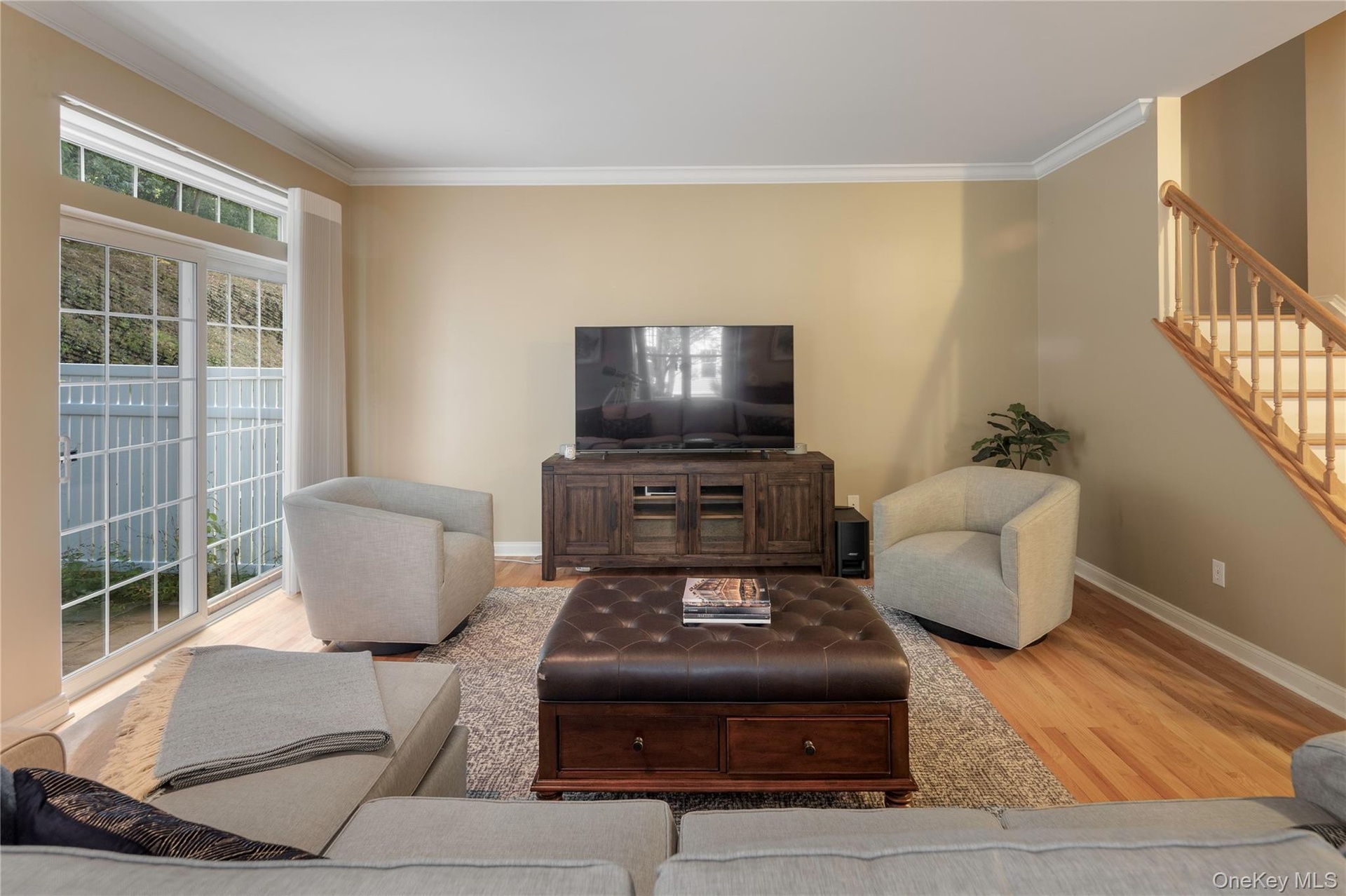 Welcome to this beautifully maintained 3-bedroom, 3.1-bath end-unit townhome in the sought-after Scarborough Glen community of Briarcliff Manor—where comfort, style, and convenience meet. This bright and spacious home features hardwood floors and elegant crown molding throughout the main level. The inviting living room offers recessed lighting and two sliding glass doors that open to a private flagstone patio with peaceful wooded views. The updated eat-in kitchen includes granite countertops, an island breakfast bar with storage, and stainless steel appliances. Upstairs, the primary suite boasts a vaulted ceiling, recessed lighting, a large walk-in closet, and a luxurious tiled bath with double vanity, soaking tub, and walk-in shower. Two additional bedrooms, a tiled hall bath, and a versatile loft complete the upper levels. The finished basement provides additional living space with an office or guest room, full bath, laundry area, and ample storage. Additional highlights include a two-car attached garage, energy-efficient updates, a 4-zone HVAC system, new hot water heater (2023), and new furnace and condenser (2024). Enjoy resort-style amenities including a pool, clubhouse, fitness center, and playground, all just minutes from the Scarborough train station, shopping, dining, and golf courses.