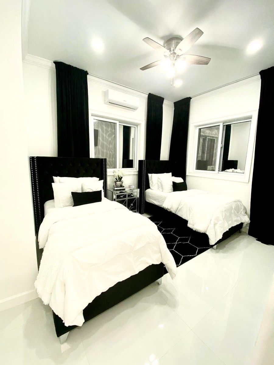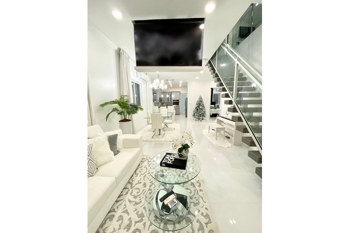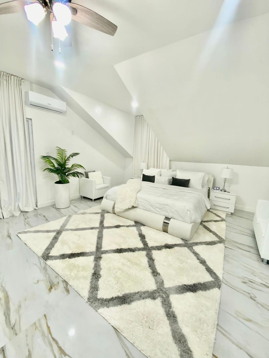 The Moss Manor is a modern, tastefully designed, 2 story home built with the finest attention to detail. Enter the home to a stunning entryway, showcasing an open concept design with 12ft ceilings throughout. Accented with crown molding, recess lighting, porcelain tiling, a gourmet kitchen, quartz countertops and Samsung appliances. Realise max enjoyment with a vanishing T.V in the living room, a breakfast bar, washer and dryer, ceiling fans and ductless A/C, hurricane grade windows and a standby generator. The home features 3 beds, 3 baths, each designed and decorated with LED mirrors, vanities with ample storage and stand-up showers. Follow the beautifully crafted floating stairs to enter the cozy loft to an impressive master bedroom with its own private balcony plus an ensuite bath with rainfall shower, double vanity, soak tub and a T.V for the total spa experience. Home is offered turnkey with utilities included. Access to golf cart and bikes to explore the island.