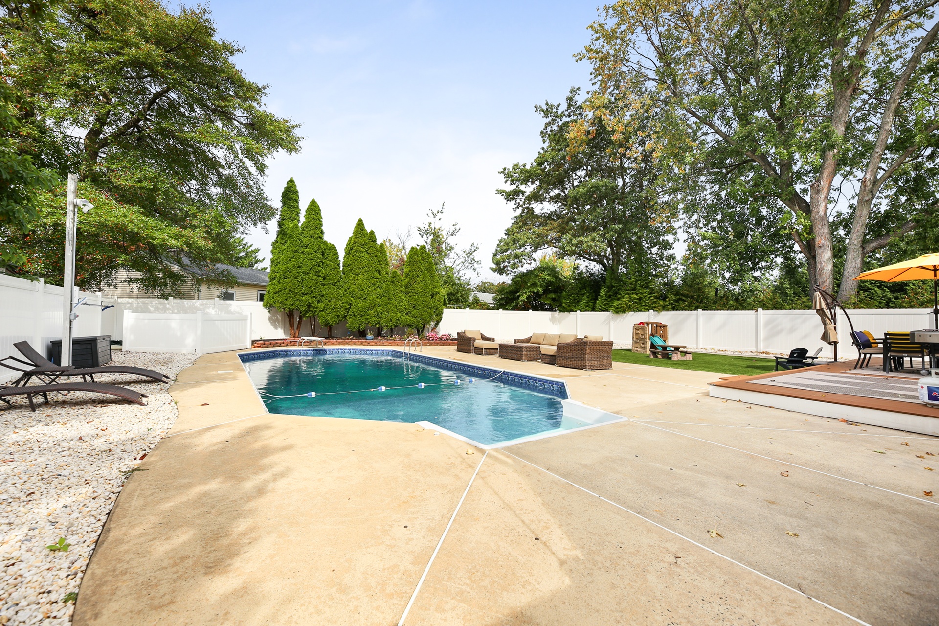 DescriptionWelcome to this spacious and inviting Brick residence, offering expansive square footage of comfortable living. This home provides 4 bedrooms and 3 full bathrooms, thoughtfully designed. Step inside to find a generous layout featuring multiple living and entertaining areas, including a full basement that expands the possibilities for recreation or storage. The kitchen and common spaces flow seamlessly, making it easy to gather. Outdoors, the property truly shines. A large deck and patio create the perfect setting for dining and entertaining, while the in-ground pool offers a refreshing retreat during the summer months. The yard is designed for relaxation and enjoyment, giving you a private outdoor escape.