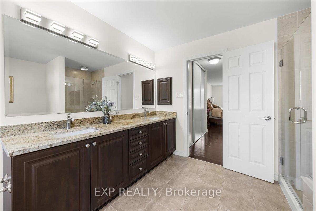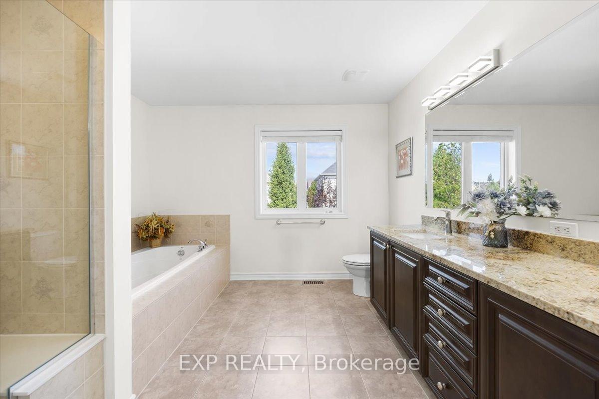 Welcome to this stunning 4-bedroom, 4-bathroom home nestled on a premium corner lot, offering exceptional curb appeal with a beautiful interlocked driveway and elegant stone exterior. This move-in ready home combines space, style, and location for the perfect family living experience. Step inside to a bright and functional layout featuring hardwood flooring throughout the main and second floors. The upgraded kitchen is a chefs dream, showcasing brand-new granite countertops, a large center island, stainless steel appliances, and an expansive breakfast nook overlooking the backyard. The main level also includes a formal living and dining area, a cozy family room, a convenient main floor laundry room, and a stylish powder room. Upstairs, the spacious primary bedroom retreat features a luxurious 5-piece ensuite with new granite countertops and a large walk-in closet. The secondary bedrooms are generously sized and share an updated full bathroom, also featuring new granite countertops. The fully finished lower level offers a spacious recreation room, an additional full bathroom, and flexible space perfect for a home office, gym, or playroom. Enjoy the outdoors in the fenced-in backyard, complete with a professionally finished interlock patio ideal for entertaining or relaxing. Located in a highly desirable neighborhood, this home is close to top-rated schools, parks, public transit, shopping, and a wide range of local amenities. Don't miss your opportunity to own this beautifully upgraded home in an unbeatable location!